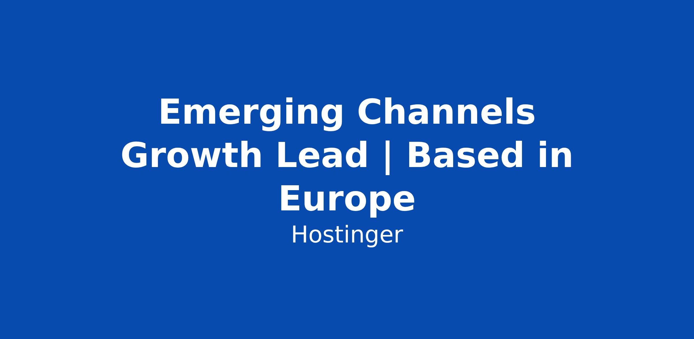 Emerging Channels Growth Lead | Based in Europe