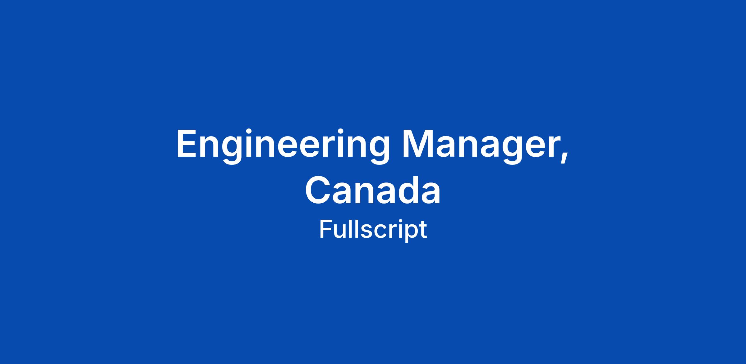 About Fullscript Weβre an industry-leading health technology company on a mission to help people get better. We started in 2011 with one simple idea. Make it easier for practitioners to access the products they trust so they can deliver better care. That simple idea grew into a platform that powers every part of care. Today, more than 125,000 practitioners use Fullscript for clinical insights, lab interpretations, patient analytics, education, and access to high-quality supplements. Over 10 million patients rely on Fullscript to stay connected to their care plans and follow through on treatment. We build tools that make care smarter and more human. Tools that save time, simplify decisions, and help practitioners stay closely connected to the people they care for. When everything they need is in one place, they can focus on what matters most: helping people get better. This is your invitation. Bring your ideas, your grit, and your care for people. Join us and shape the future of care. The Role Weβre looking for a hands-on Engineering Manager to lead a brand new Canada-focused pod at Fullscript, created to accelerate Fullscriptβs growth in Canada. This unique role will operate at the... Click Apply to read the full job description.