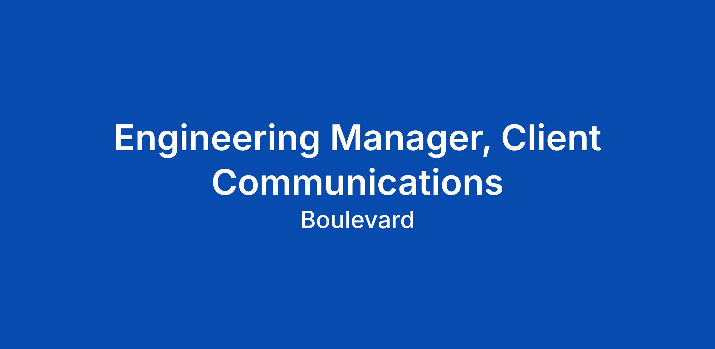 Engineering Manager, Client Communications