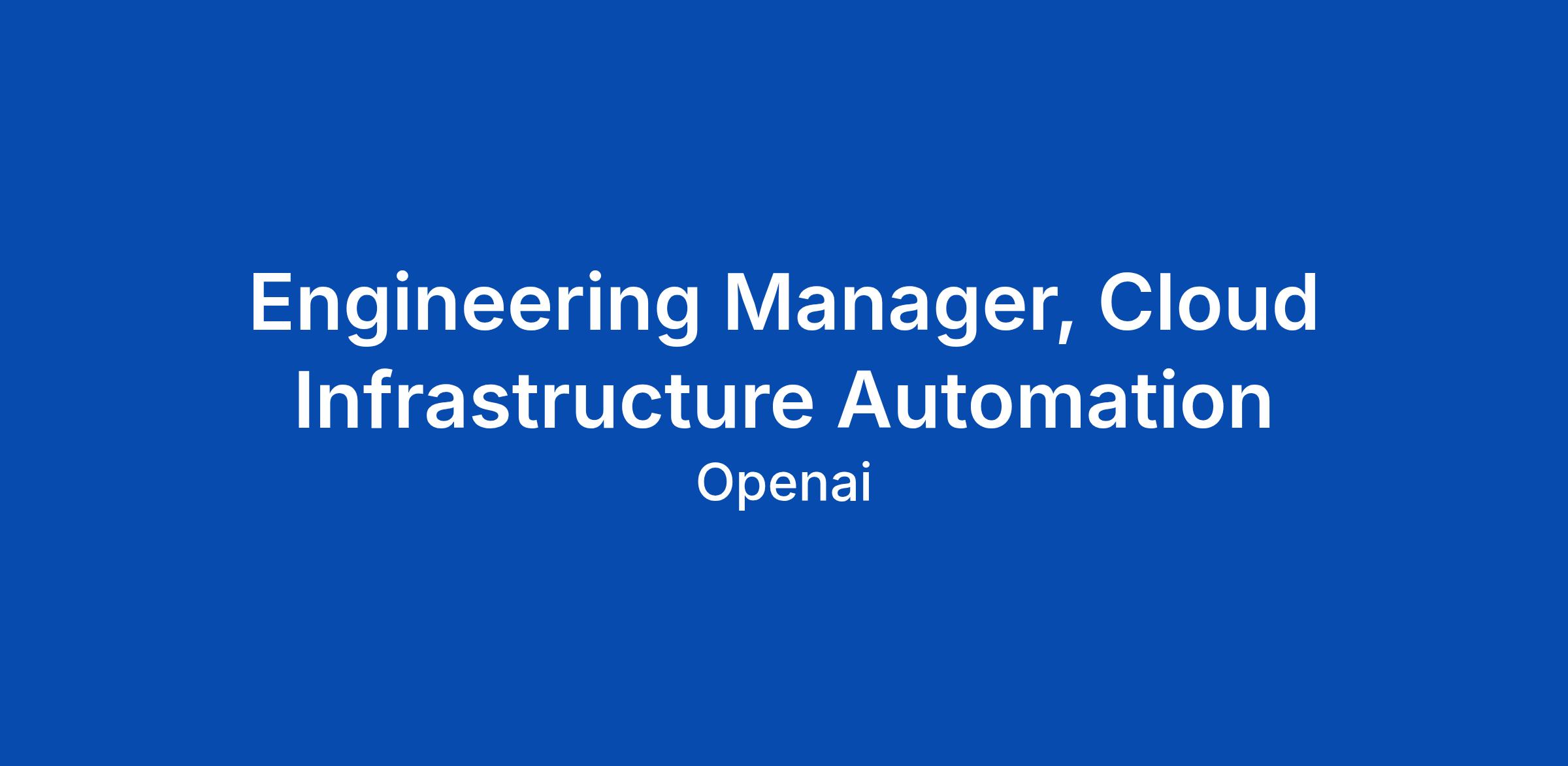 Engineering Manager, Cloud Infrastructure Automation