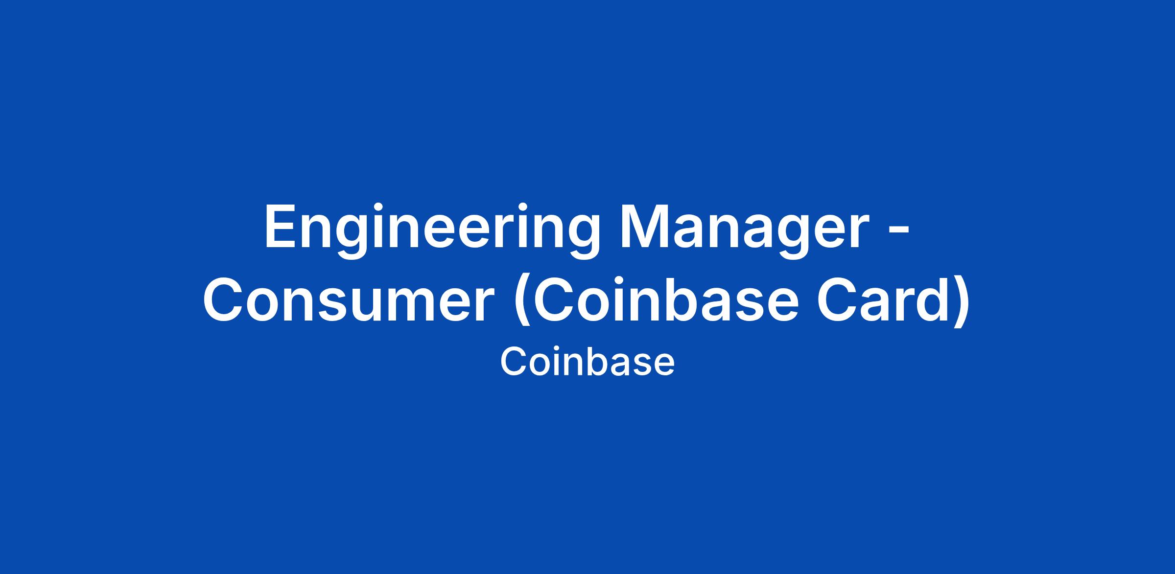 Engineering Manager - Consumer (Coinbase Card)