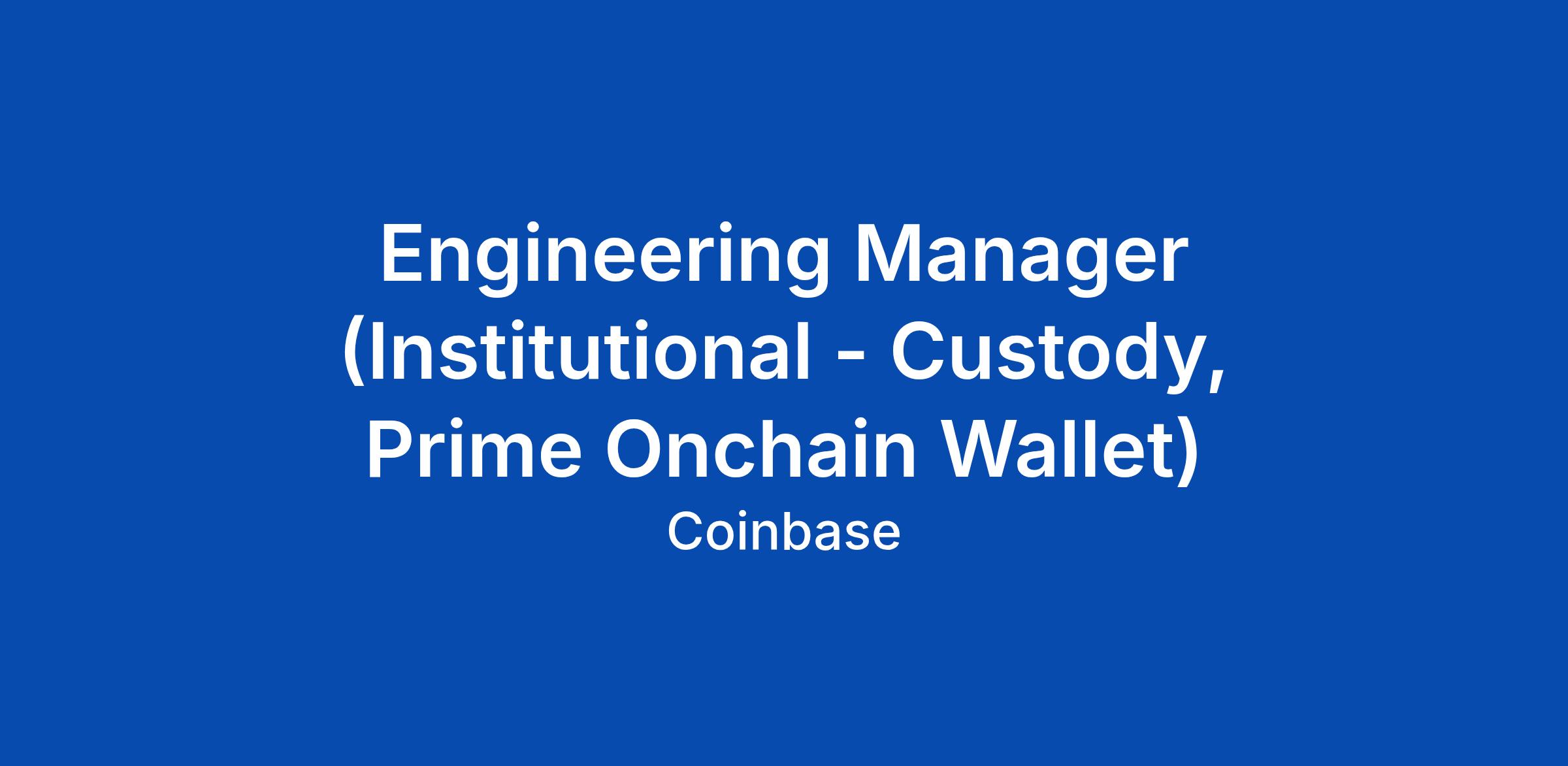 Engineering Manager (Institutional - Custody, Prime Onchain Wallet)
