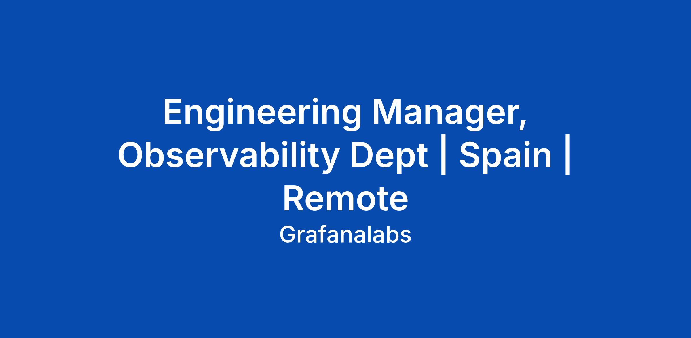 Engineering Manager, Observability Dept | Spain | Remote