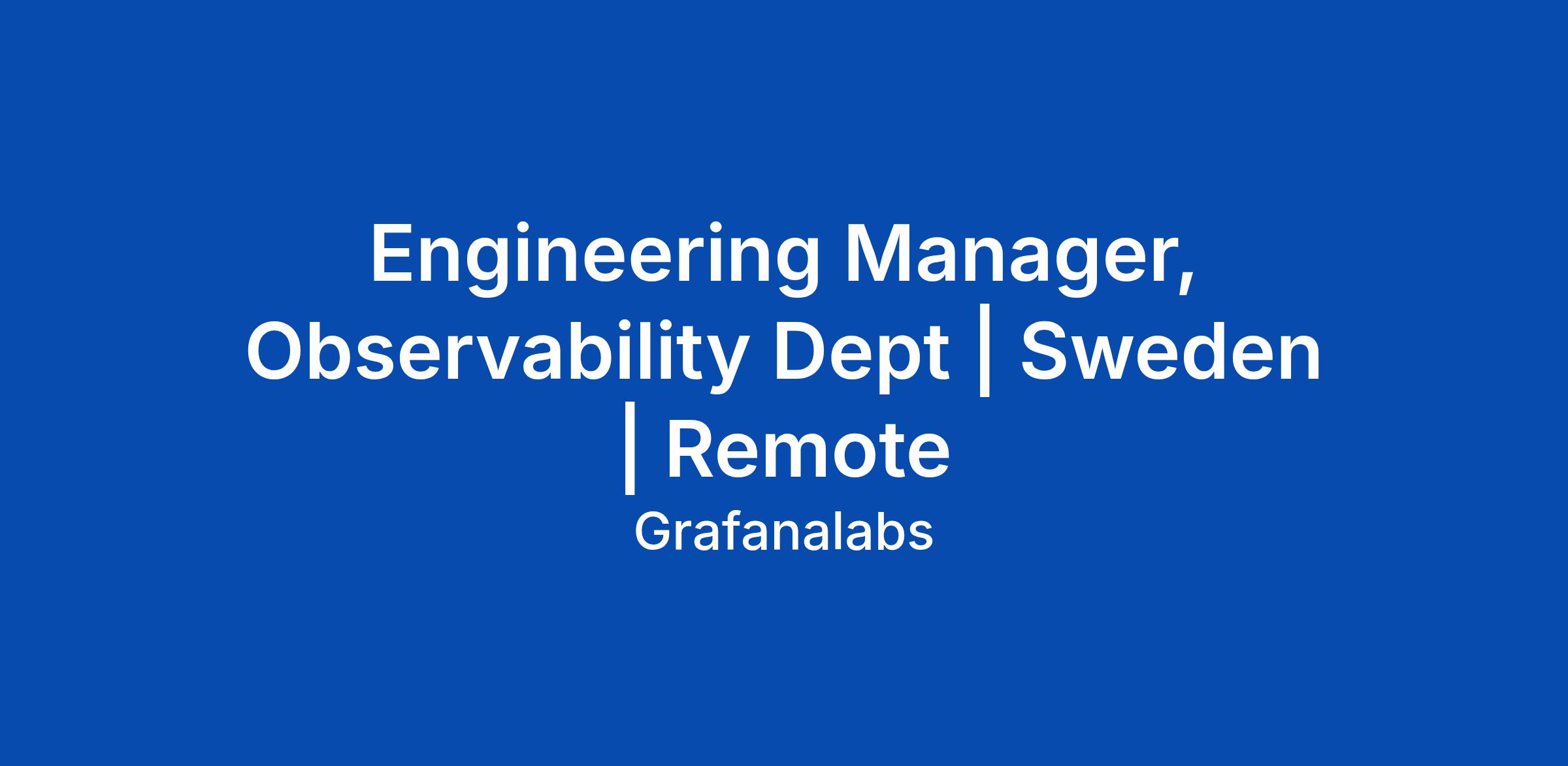 Engineering Manager, Observability Dept | Sweden | Remote