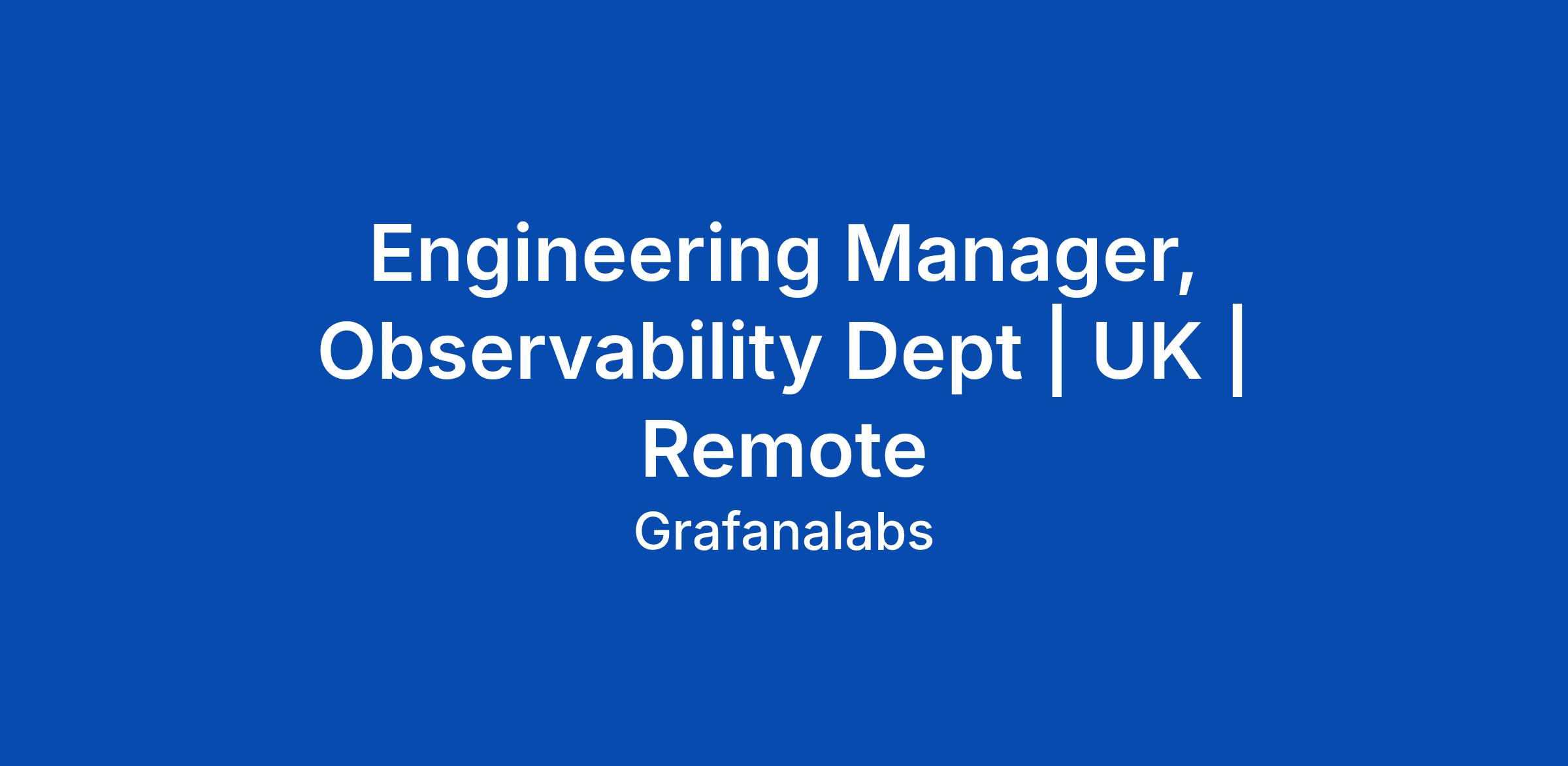 Engineering Manager, Observability Dept | UK | Remote