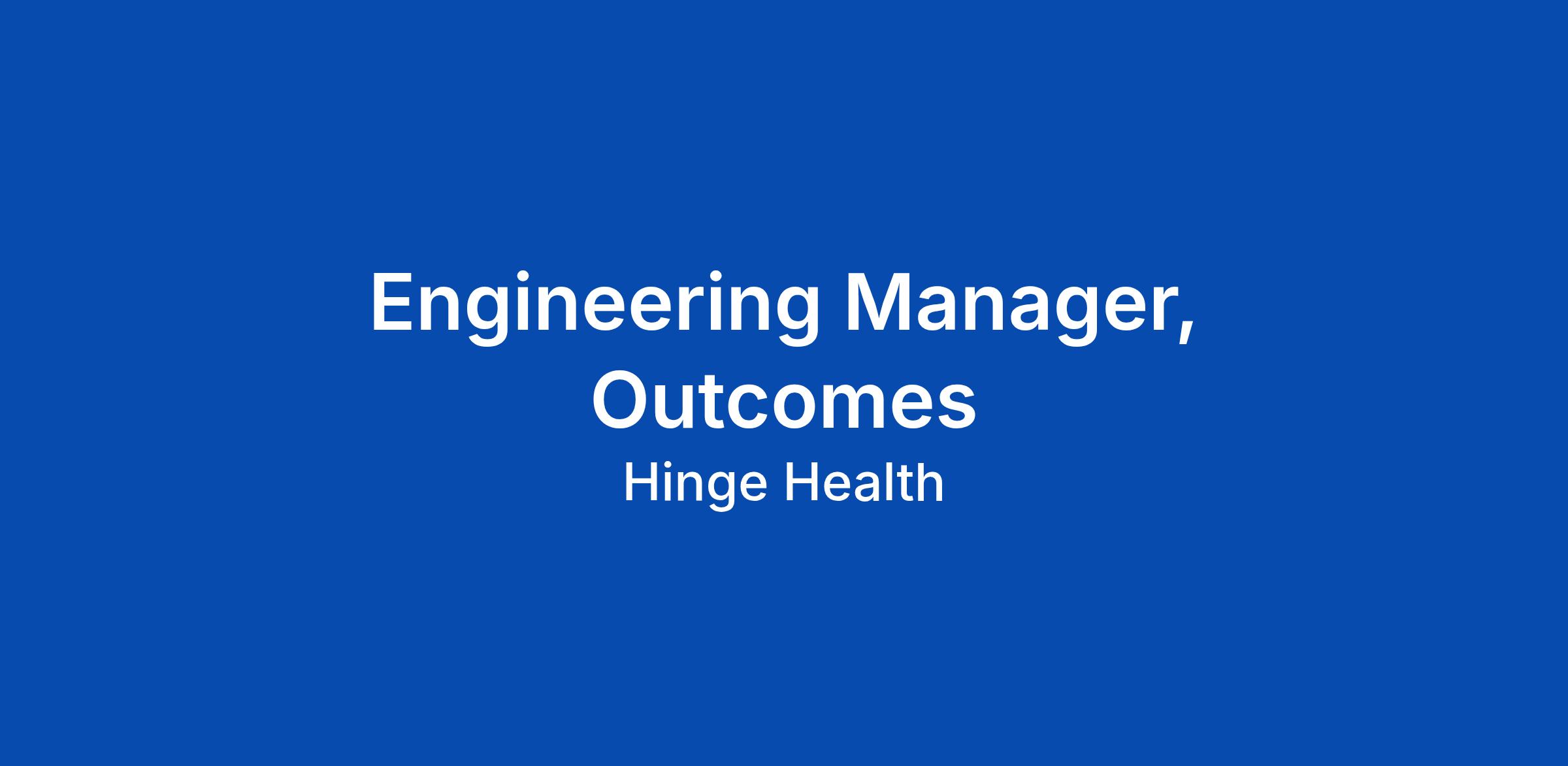 THE OPPORTUNITY Pain reduction isn't a vanity metric at Hinge Health — it's the mission. The Outcomes pod owns the member-facing surfaces that make clinical progress visible (pain logging, health assessments, outcomes visualization) and the Assessment Service, the company-wide platform that powers every structured survey and PROM across Migraine, Perisurgical, Women's Pelvic Health, and beyond. As the Engineering Manager for this team, you'll lead 8 engineers at the intersection of consumer product craft, clinical measurement rigor, and platform engineering — turning clinical signal into product bets and operating the infrastructure the entire organization depends on. WHAT YOU'LL ACCOMPLISH In your first 3 months, you will: - Build trusted partnerships with your PM, Data Scientist, and cross-neighborhood engineering leads. Understand the full stack — from the React Native client (phoenix) through phoenix-bff to assessment-service — and complete your first code reviews and PR merges. - Audit the current Assessment Service roadmap, catalog inbound requests from partner pods (Migraine, Perisurgical, Enrollment), and establish a transparent prioritization framework that balances intern