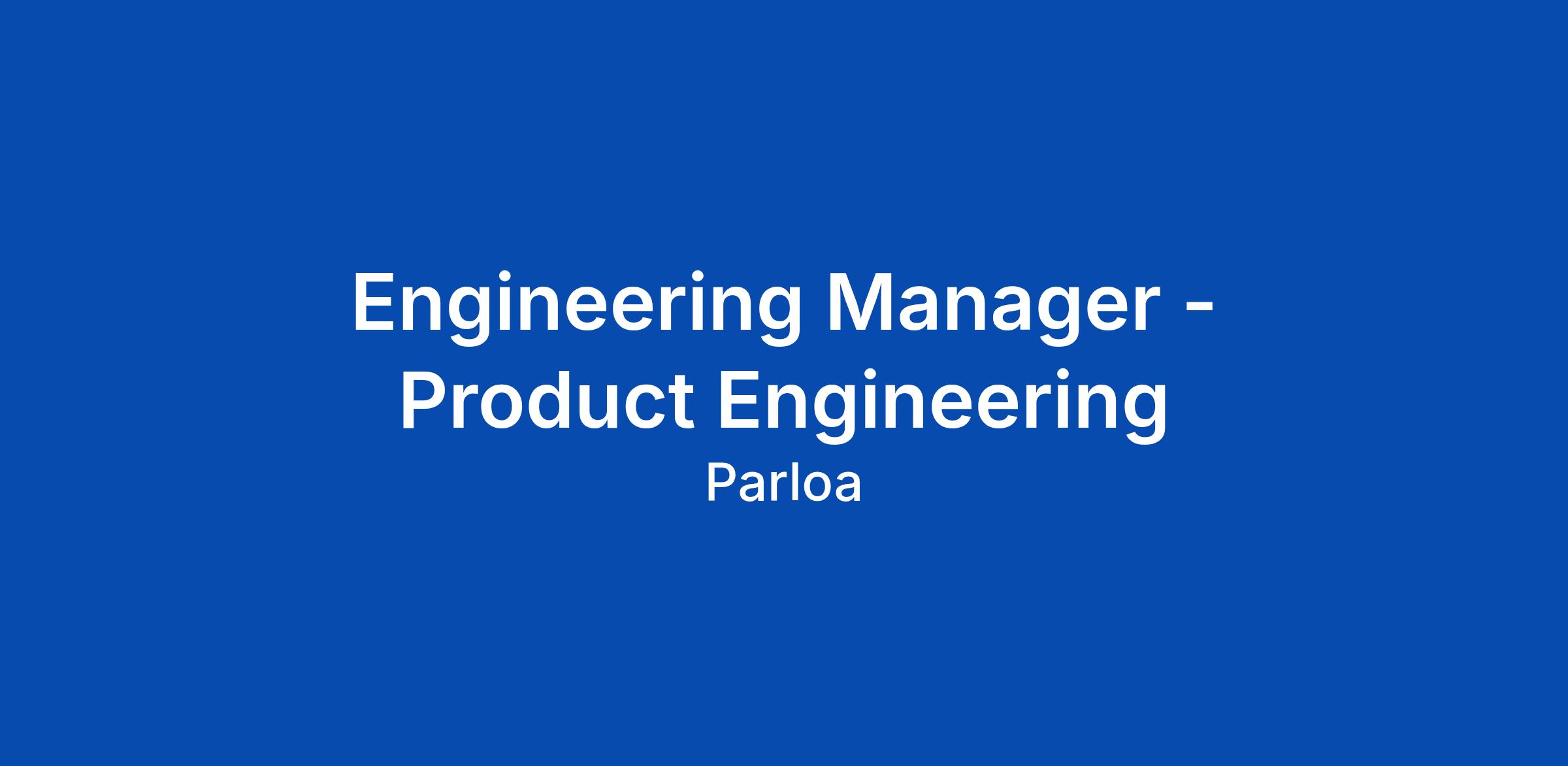 Engineering Manager - Product Engineering