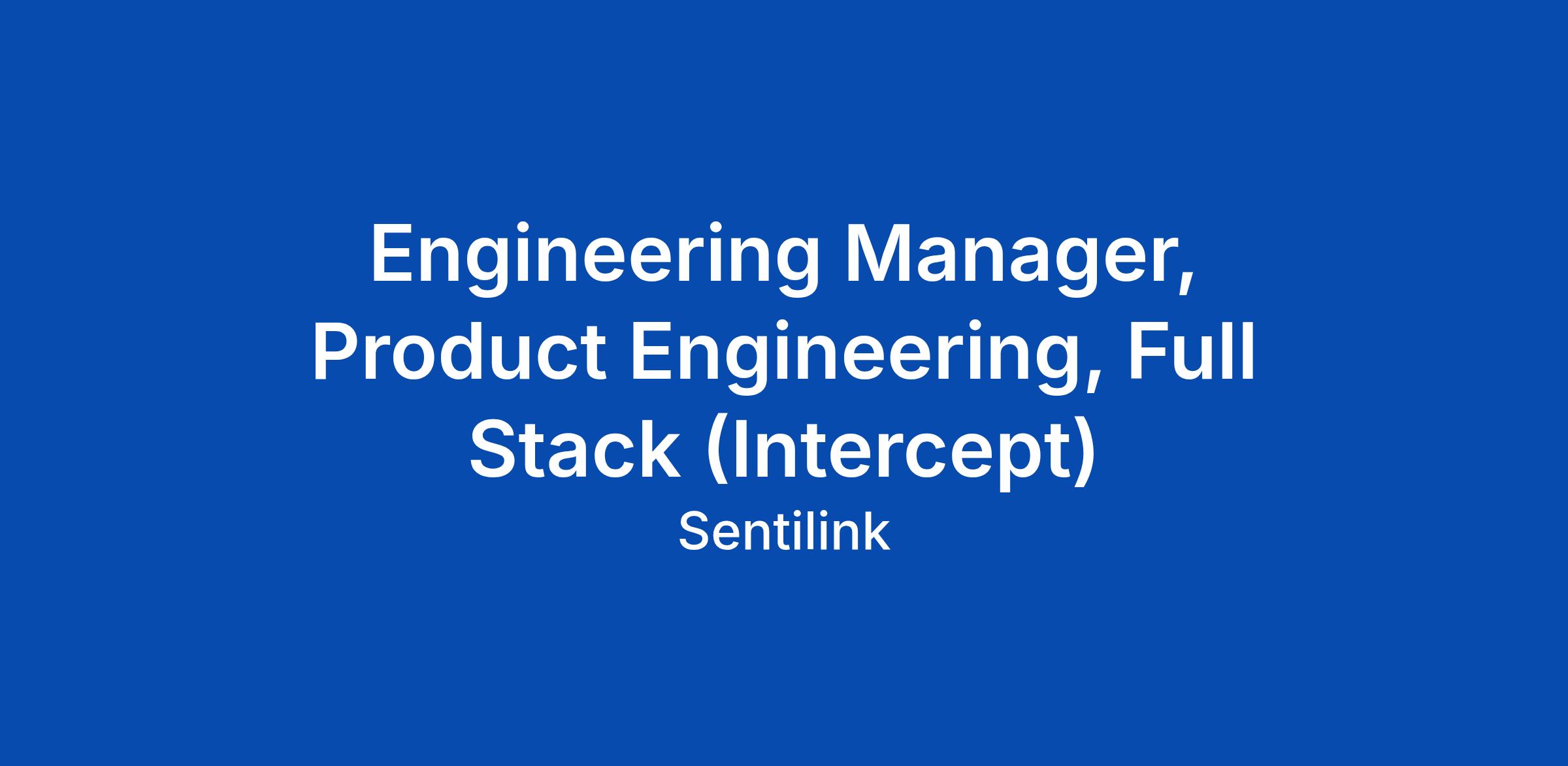 Engineering Manager, Product Engineering, Full Stack (Intercept)