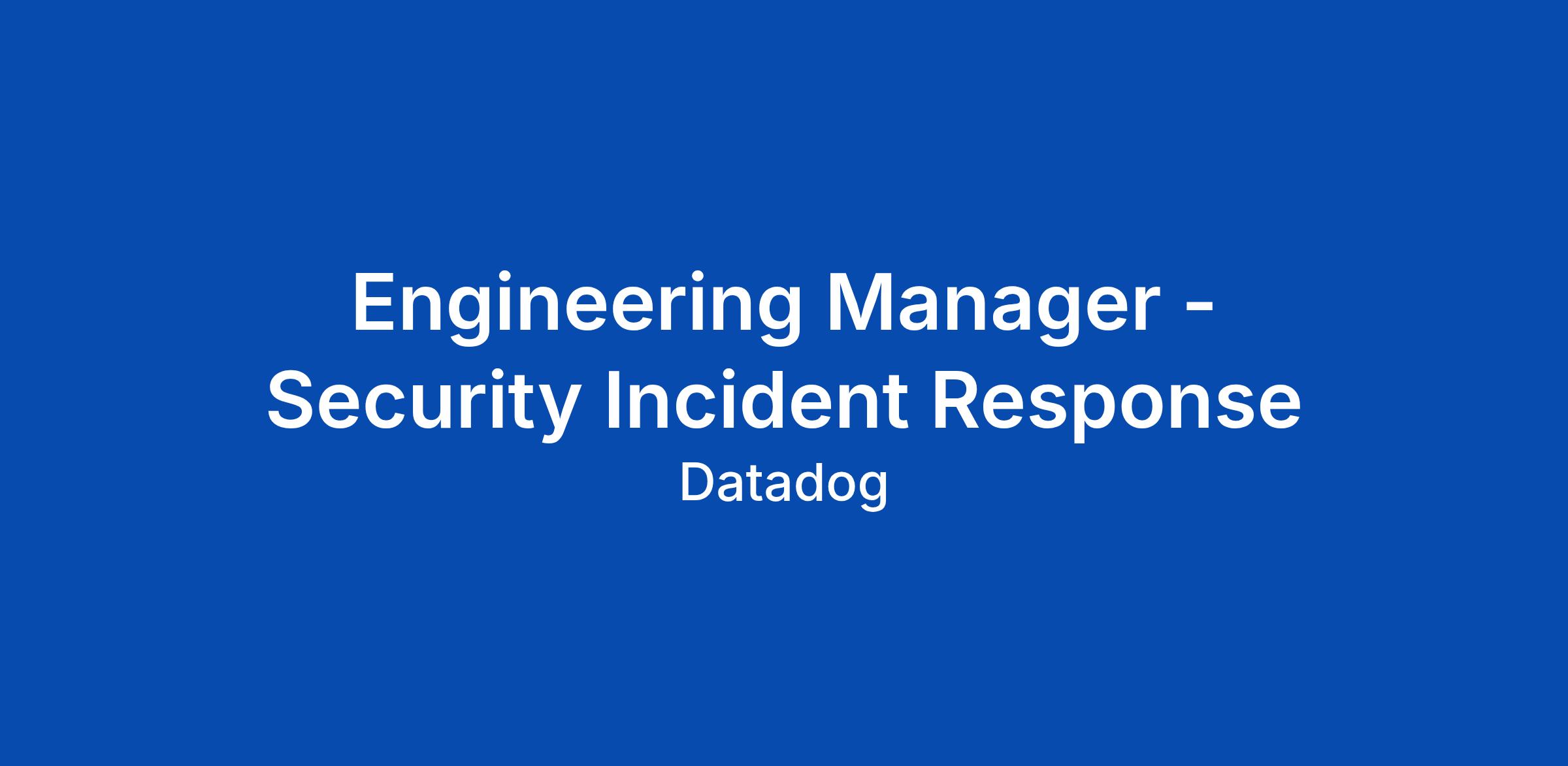 Engineering Manager - Security Incident Response