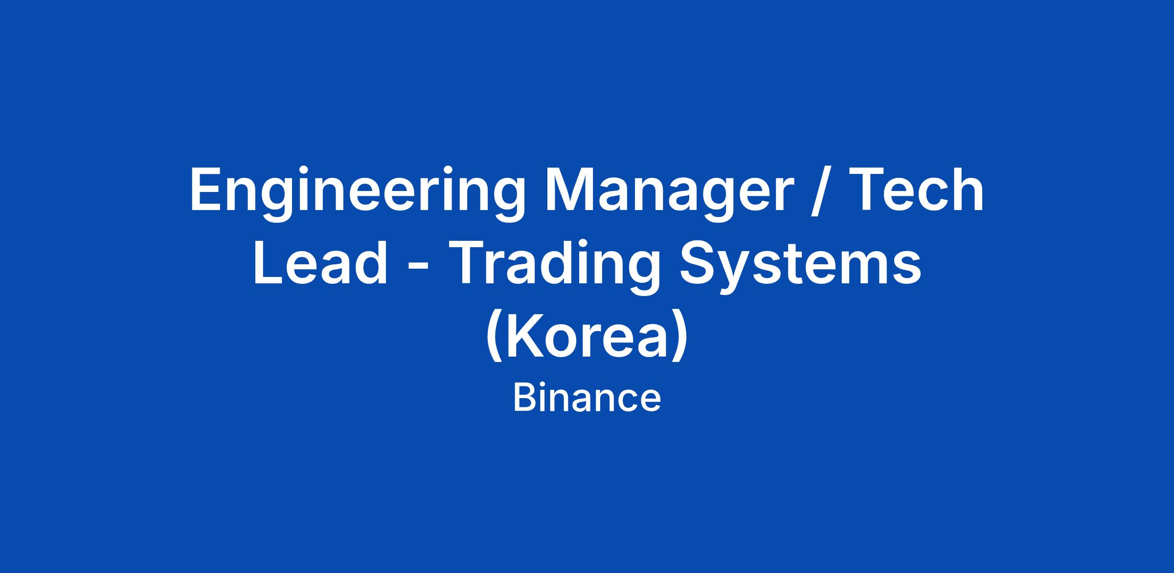 Engineering Manager / Tech Lead - Trading Systems (Korea)