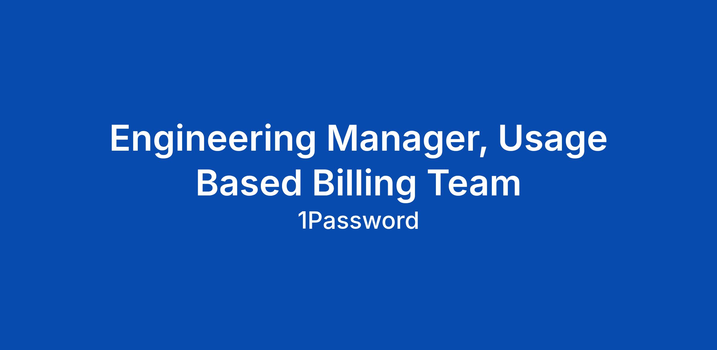 Engineering Manager, Usage Based Billing Team