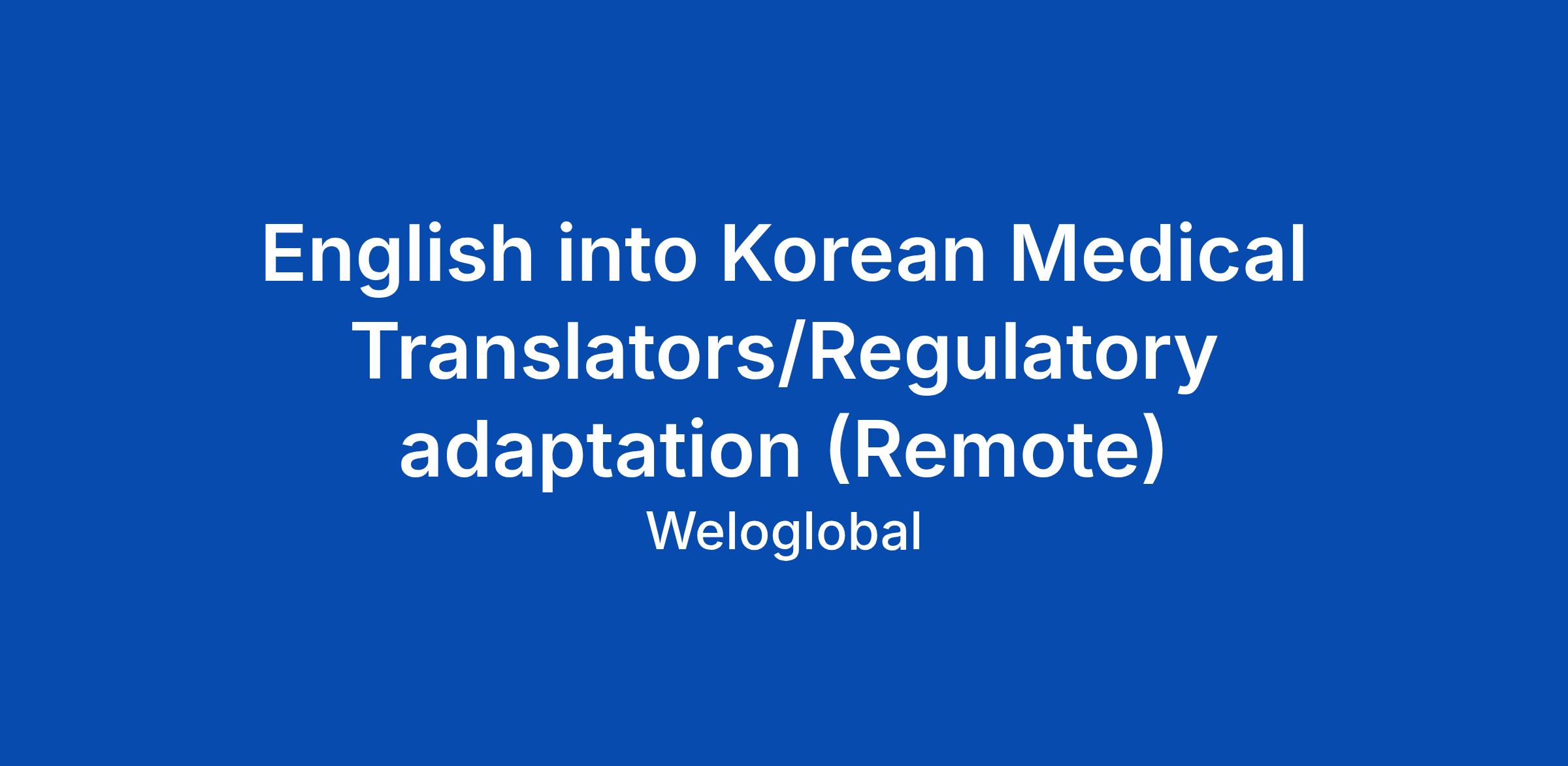 English into Korean Medical Translators/Regulatory adaptation (Remote)