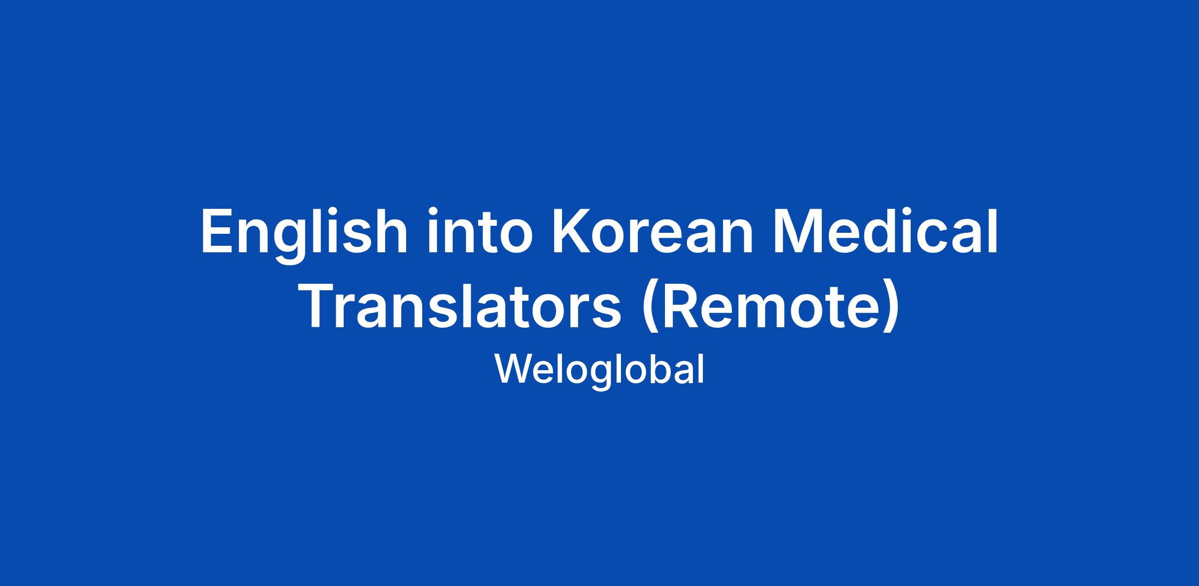 English into Korean Medical Translators (Remote)