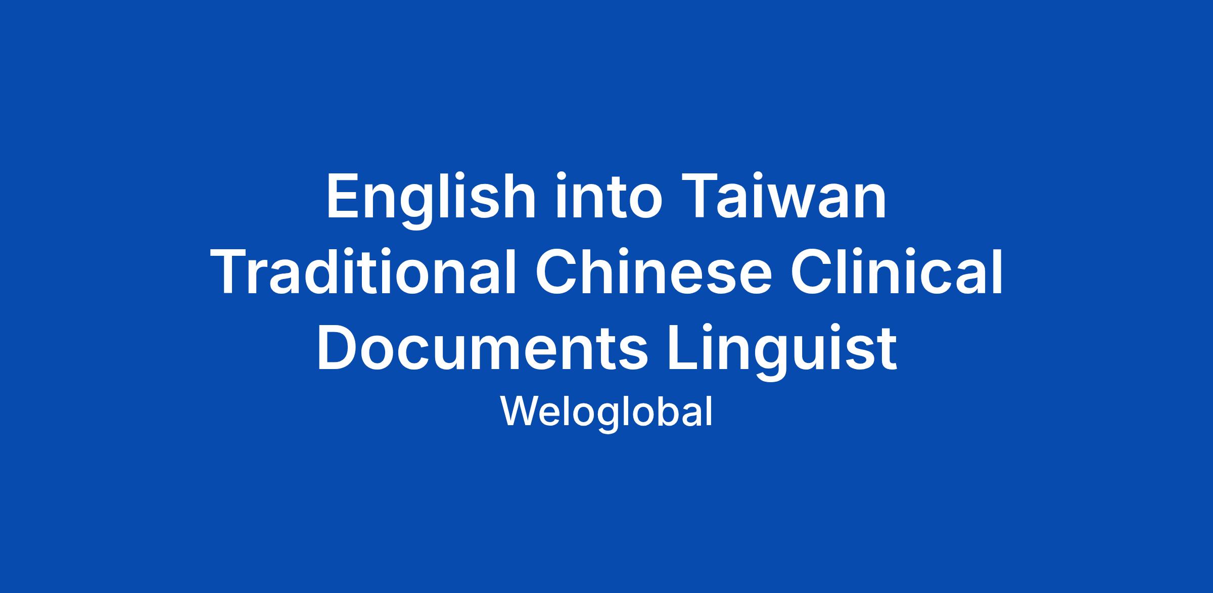 English into Taiwan Traditional Chinese Clinical Documents Linguist