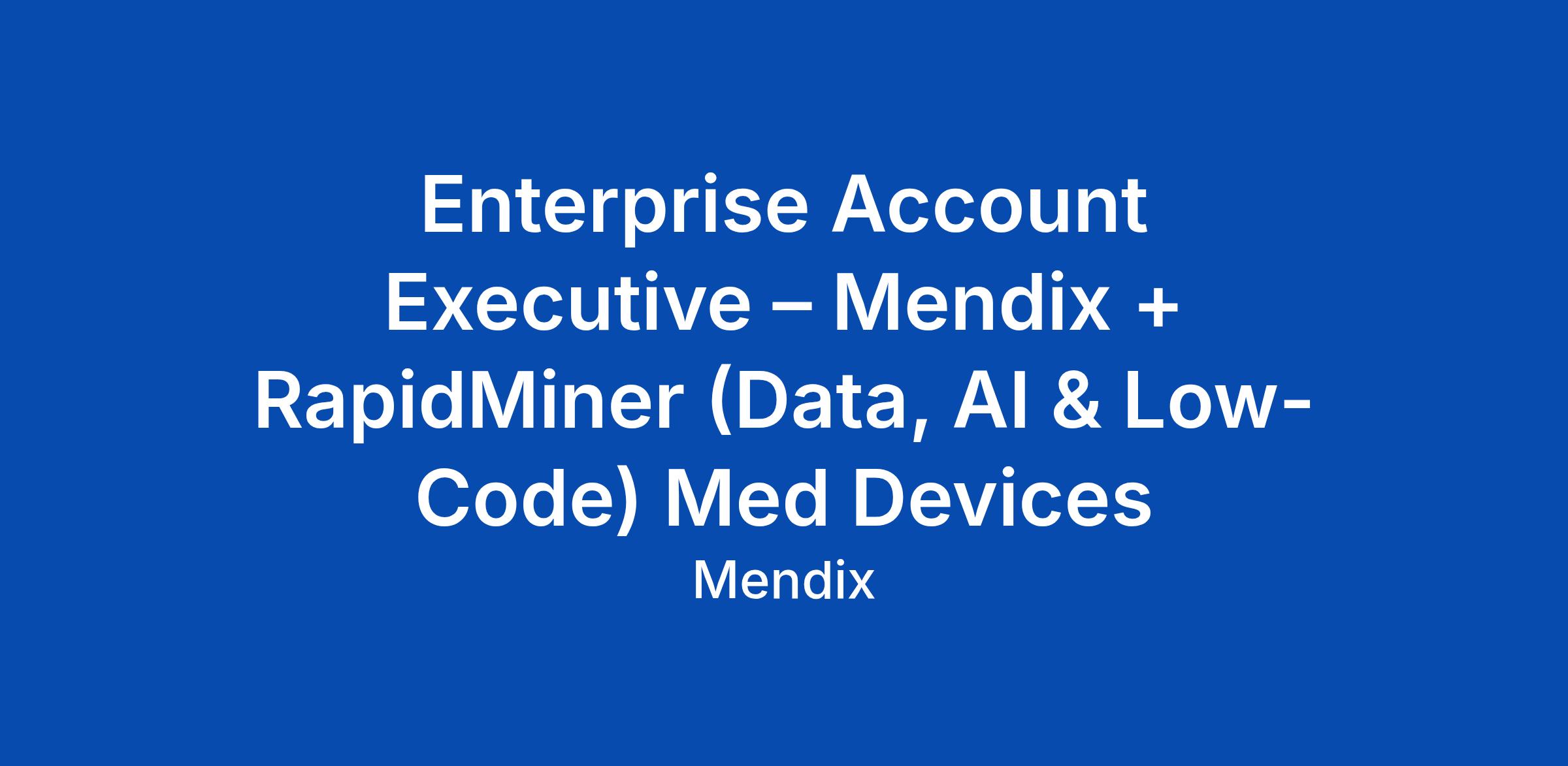 Enterprise Account Executive – Mendix + RapidMiner (Data, AI & Low-Code) Med Devices