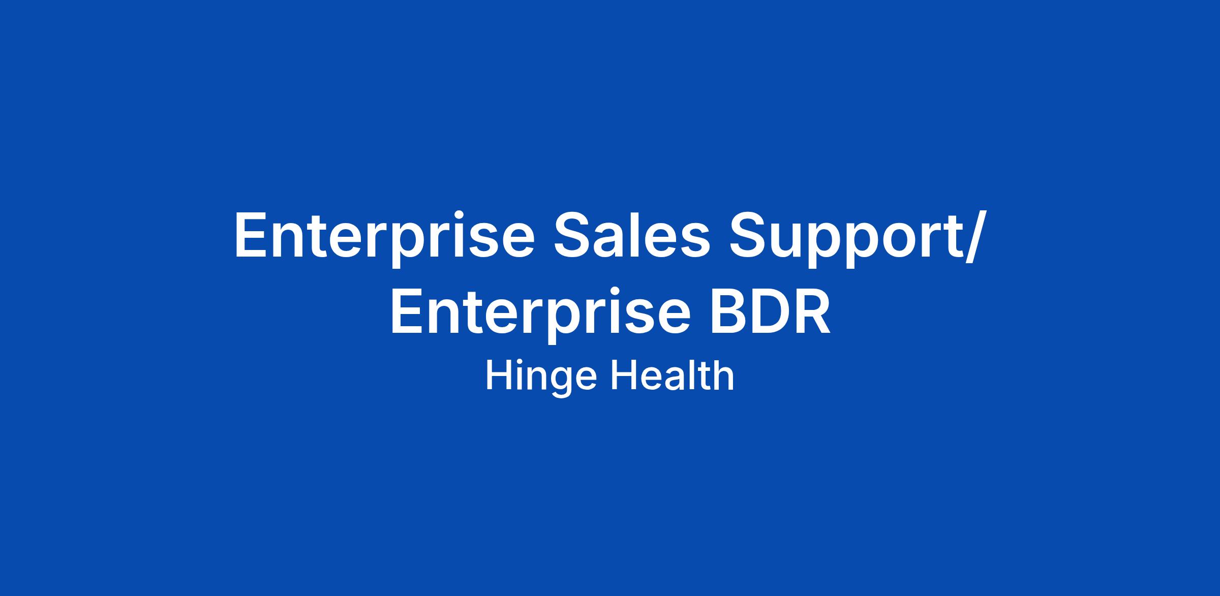 THE OPPORTUNITY Join the team transforming how we deliver musculoskeletal (MSK) care by supporting the engine that powers our commercial growth. In a hybrid Sales Support / Enterprise Business Representative (BDR) role, you will be responsible for bringing in net new meetings as well provide an array of strategic-level support to our best in class Enterprise Regional Vice Presidents (RVPs). You will bridge the gap between prospecting and leadership, supporting critical accounts for Hinge Health. If you are an ambitious sales professional ready to master supporting complex enterprise sales, this role is your platform to make an impact. This is a high-output, high-visibility role. You will be expected to operate with urgency, manage competing priorities from multiple senior stakeholders, and execute at a high bar daily. WHAT YOUβLL ACTUALLY DO (DAY-TO-DAY) - Build highly targeted prospect lists and execute outbound campaigns - Draft executive-level emails, decks, and follow-ups on behalf of RVPs - Coordinate internal stakeholders to unblock deals (legal, marketing, product) - Prepare RVPs for key meetings (research, briefs, POVs) - Jump into live opportunities to move deals forwardβw