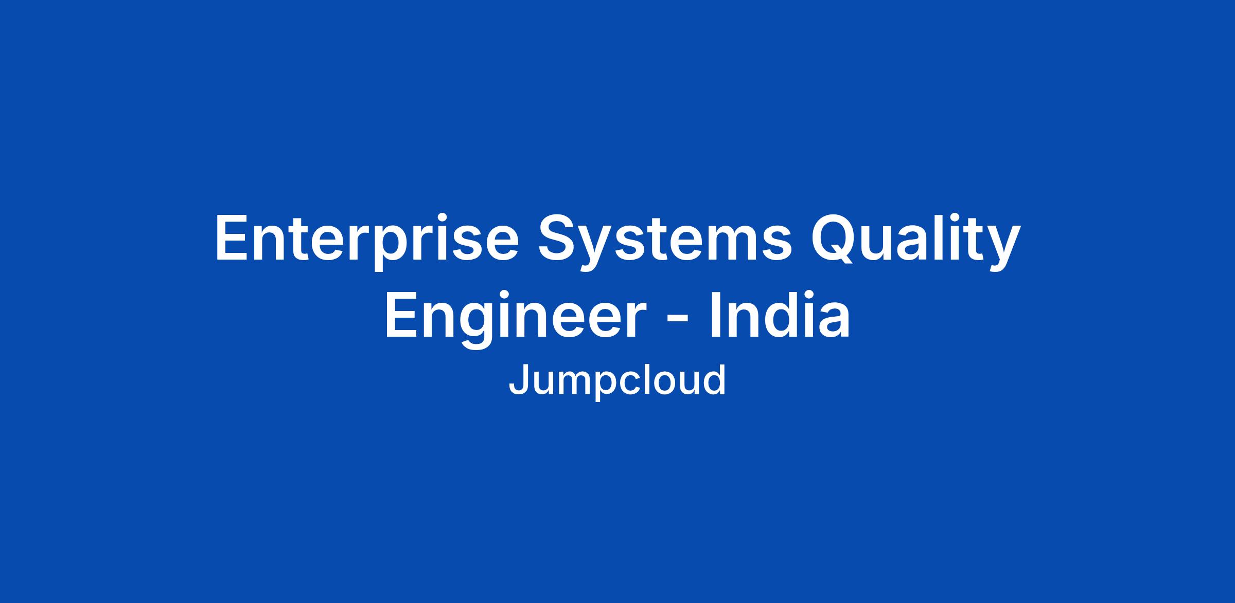 Enterprise Systems Quality Engineer - India