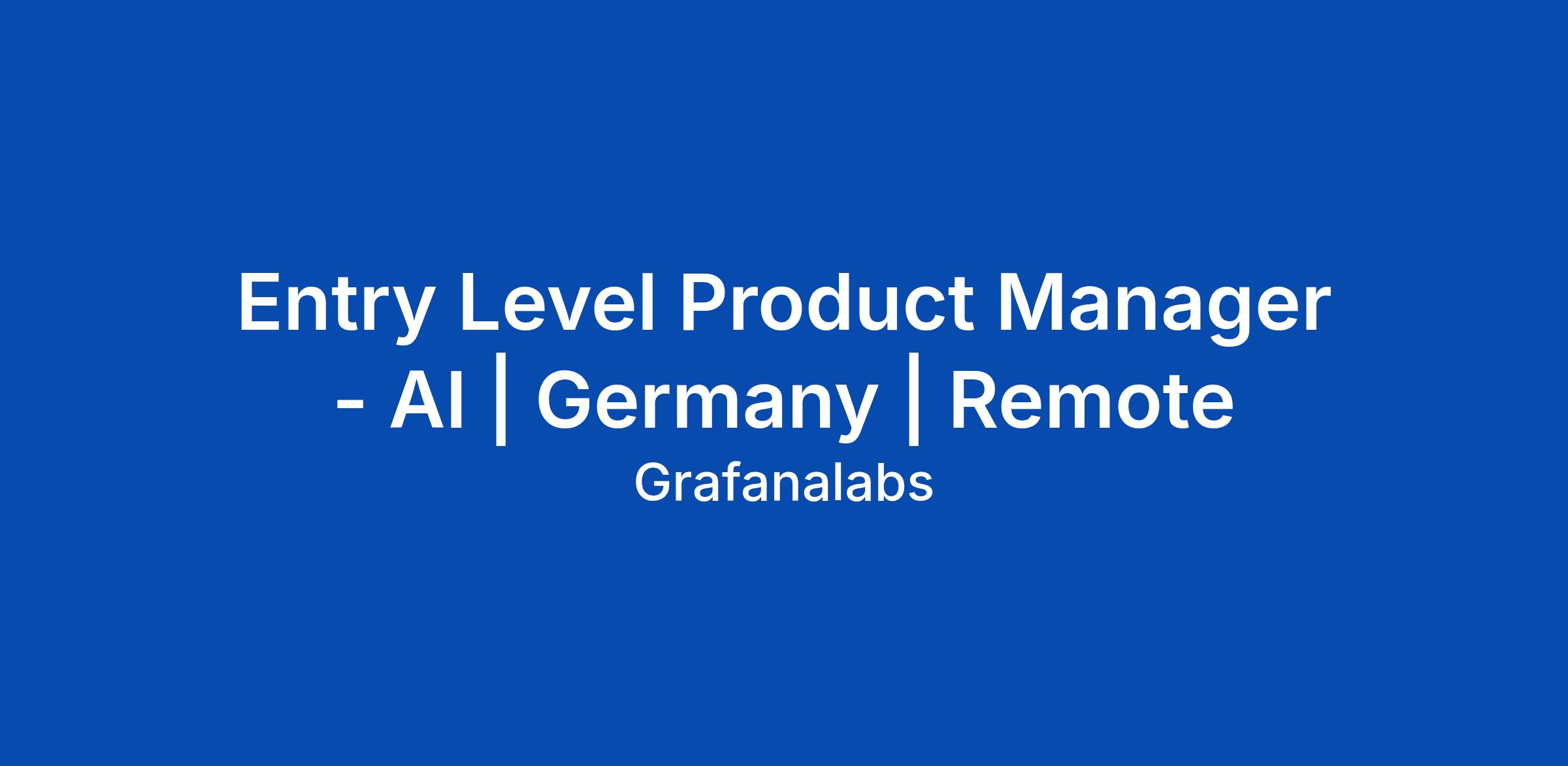 Entry Level Product Manager - AI | Germany | Remote