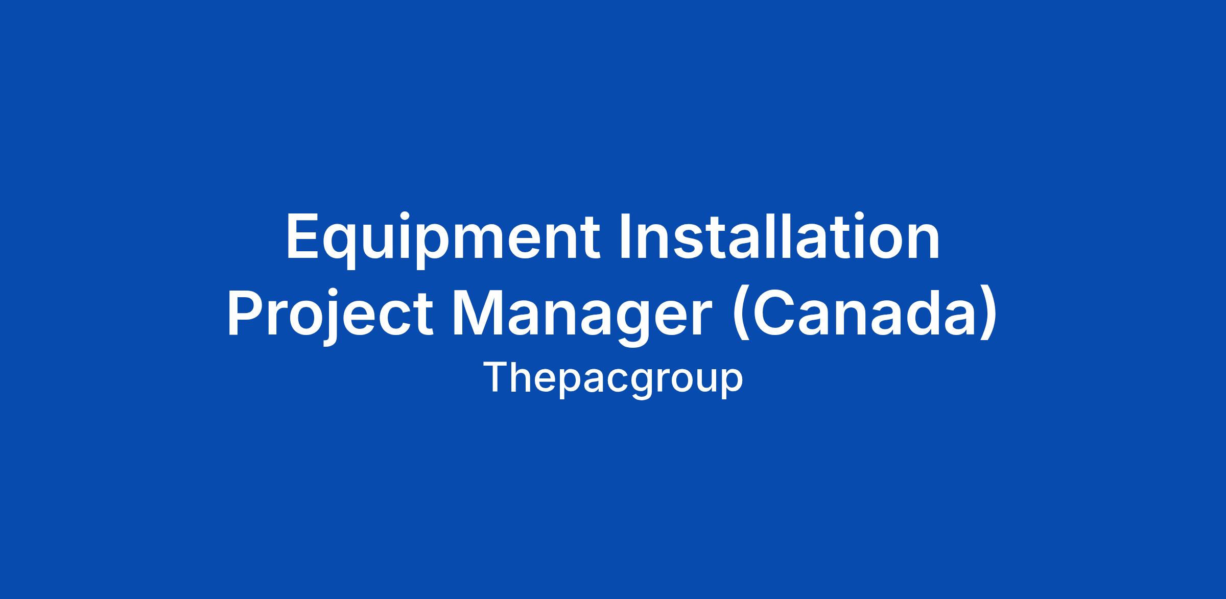 Equipment Installation Project Manager (Canada)
