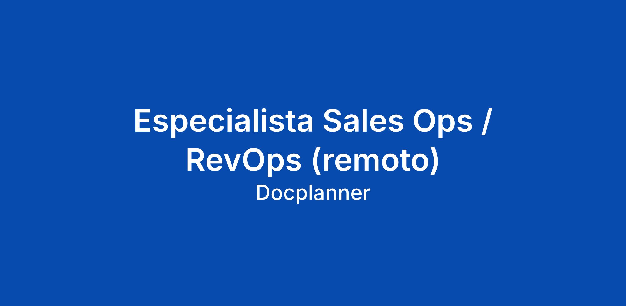 Especialista Sales Ops / RevOps (remoto)