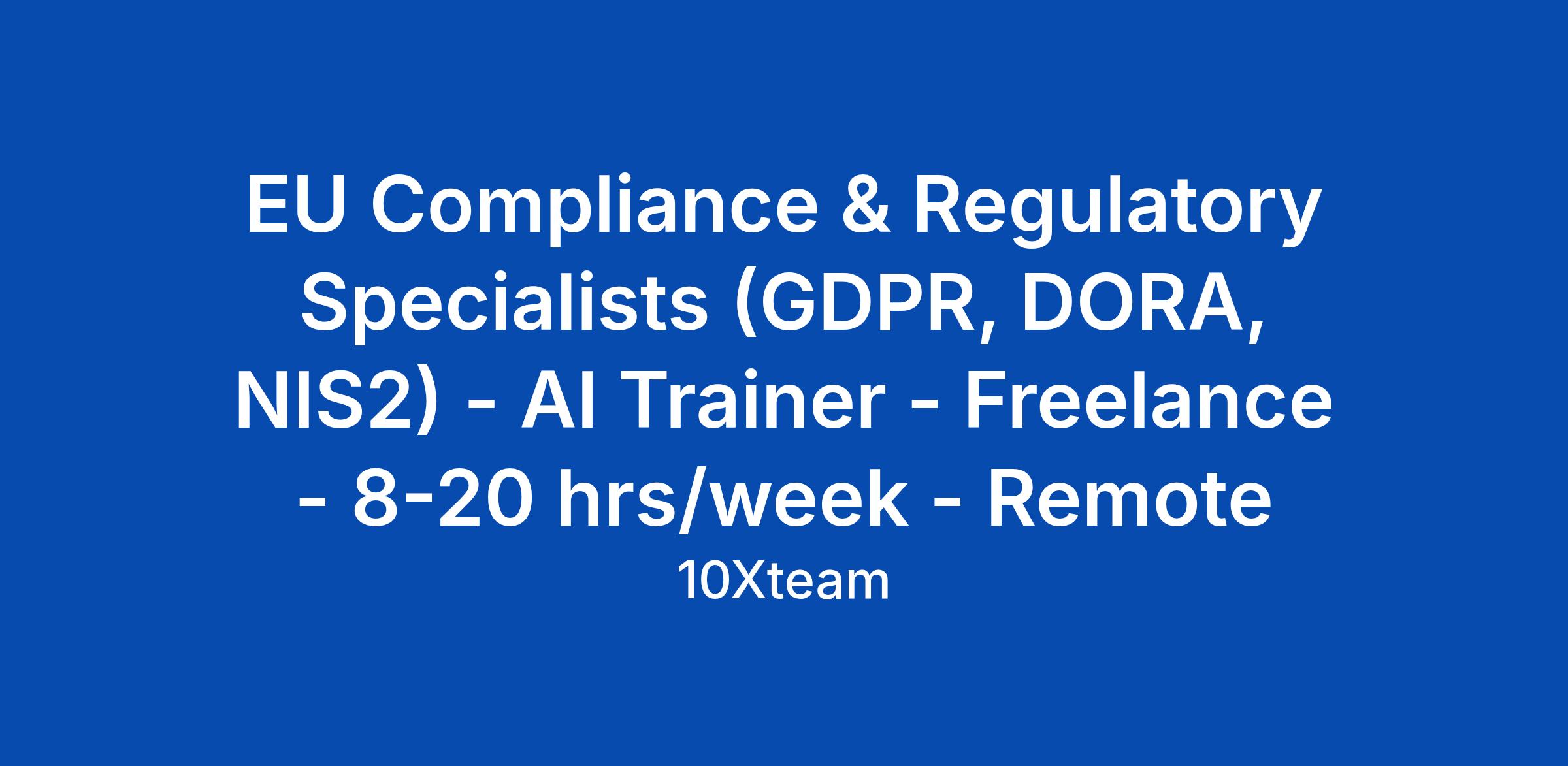 EU Compliance & Regulatory Specialists (GDPR, DORA, NIS2) - AI Trainer - Freelance - 8-20 hrs/week - Remote