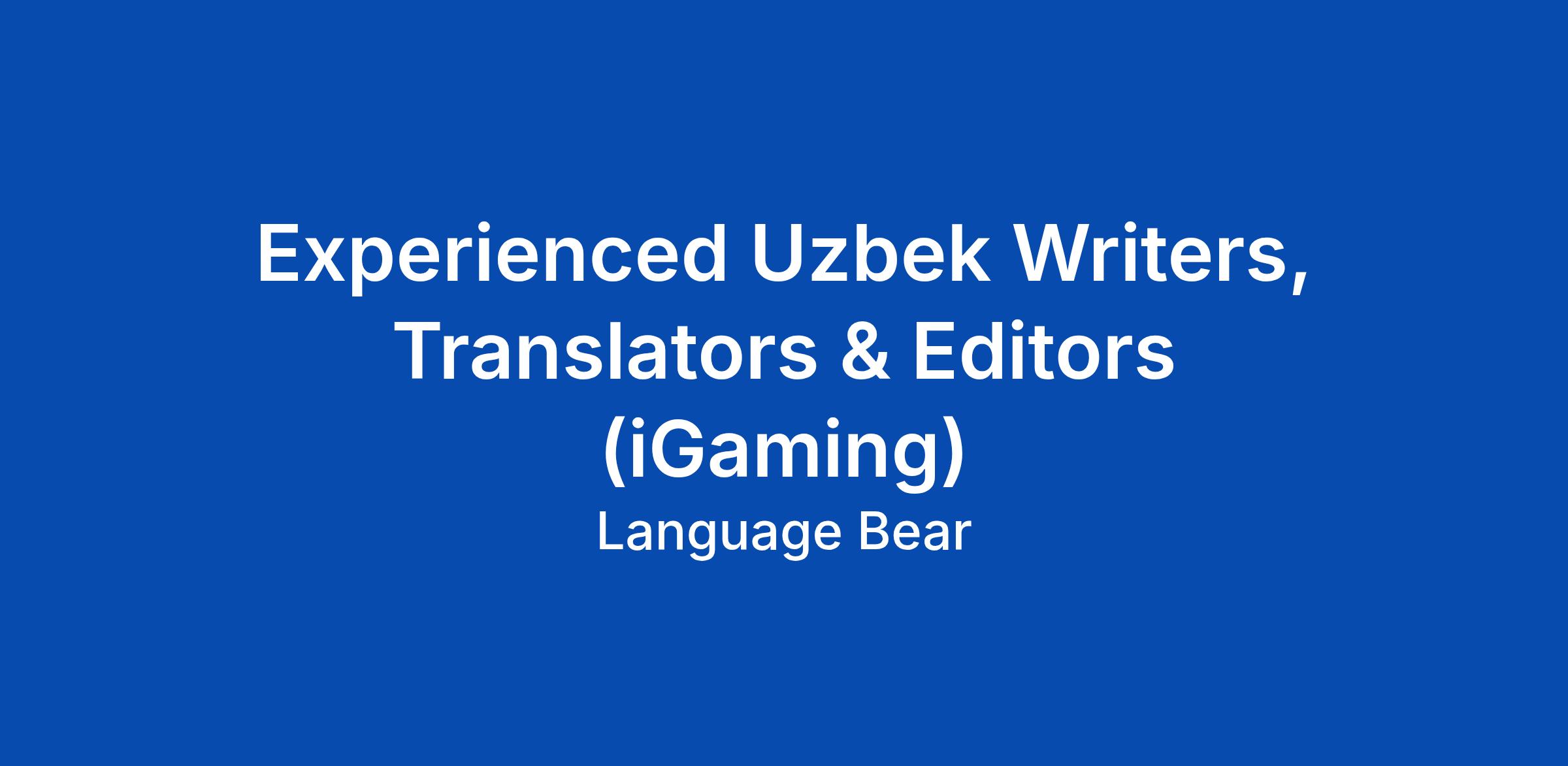 Your task includes writing in Uzbek, translating from English to Uzbek or editing content related to iGaming as the articles usually include game reviews or such of different global providers, promo & guest articles.