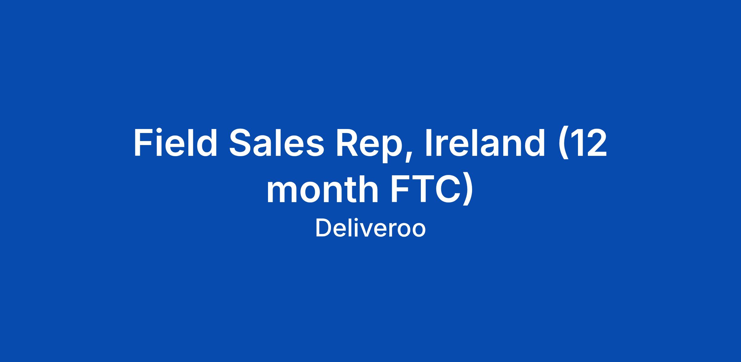Field Sales Rep, Ireland (12 month FTC)