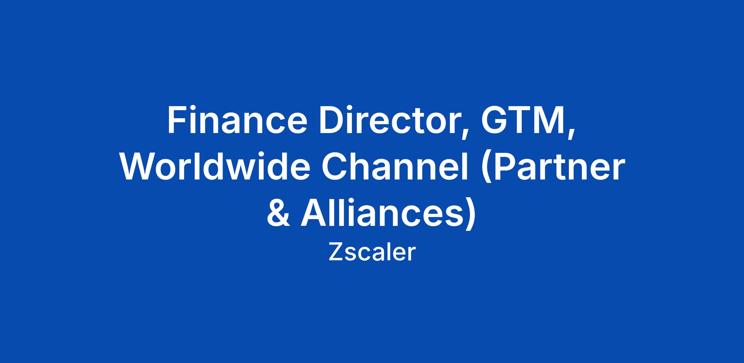 Finance Director, GTM, Worldwide Channel (Partner & Alliances)