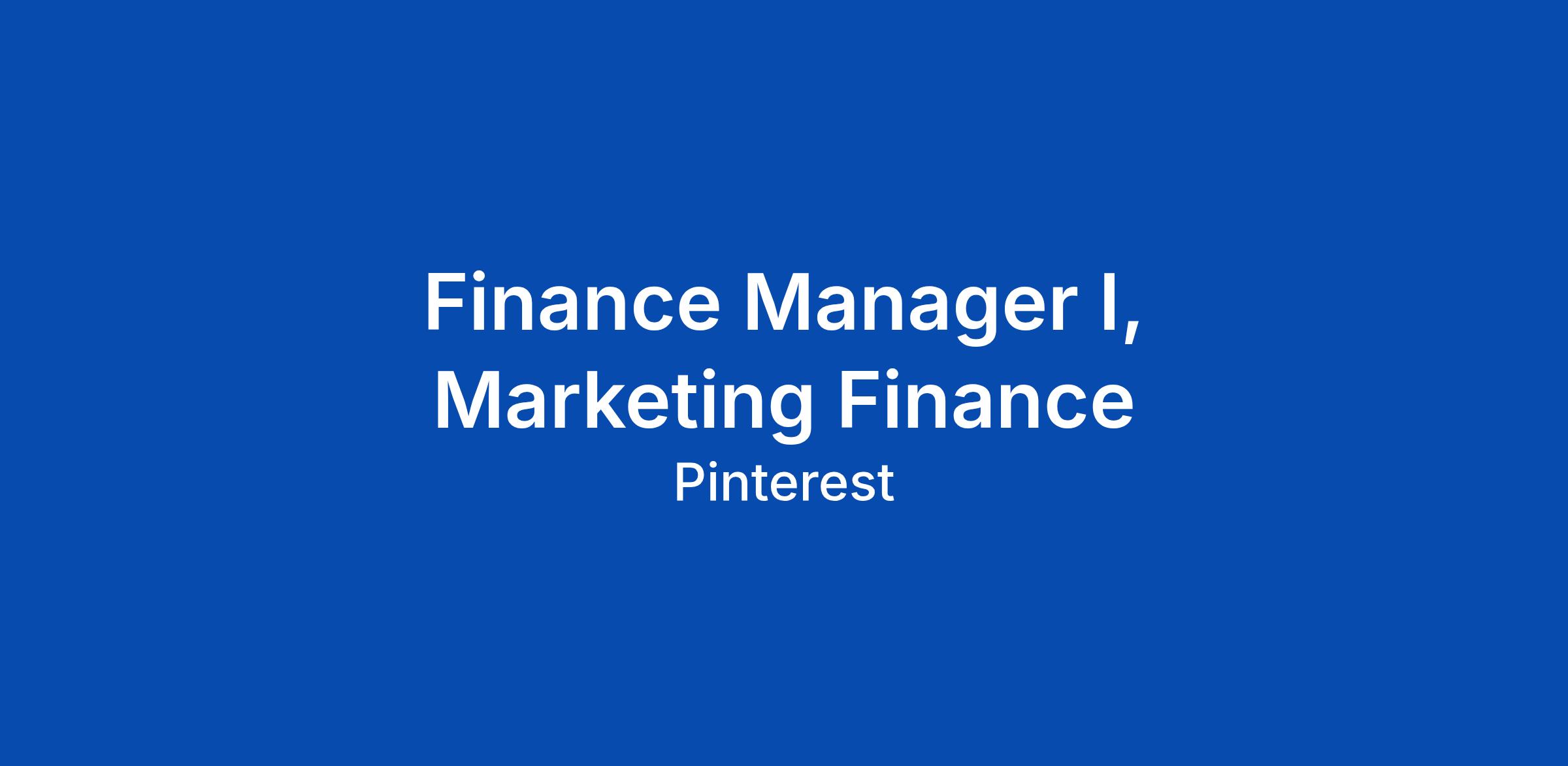Finance Manager I, Marketing Finance