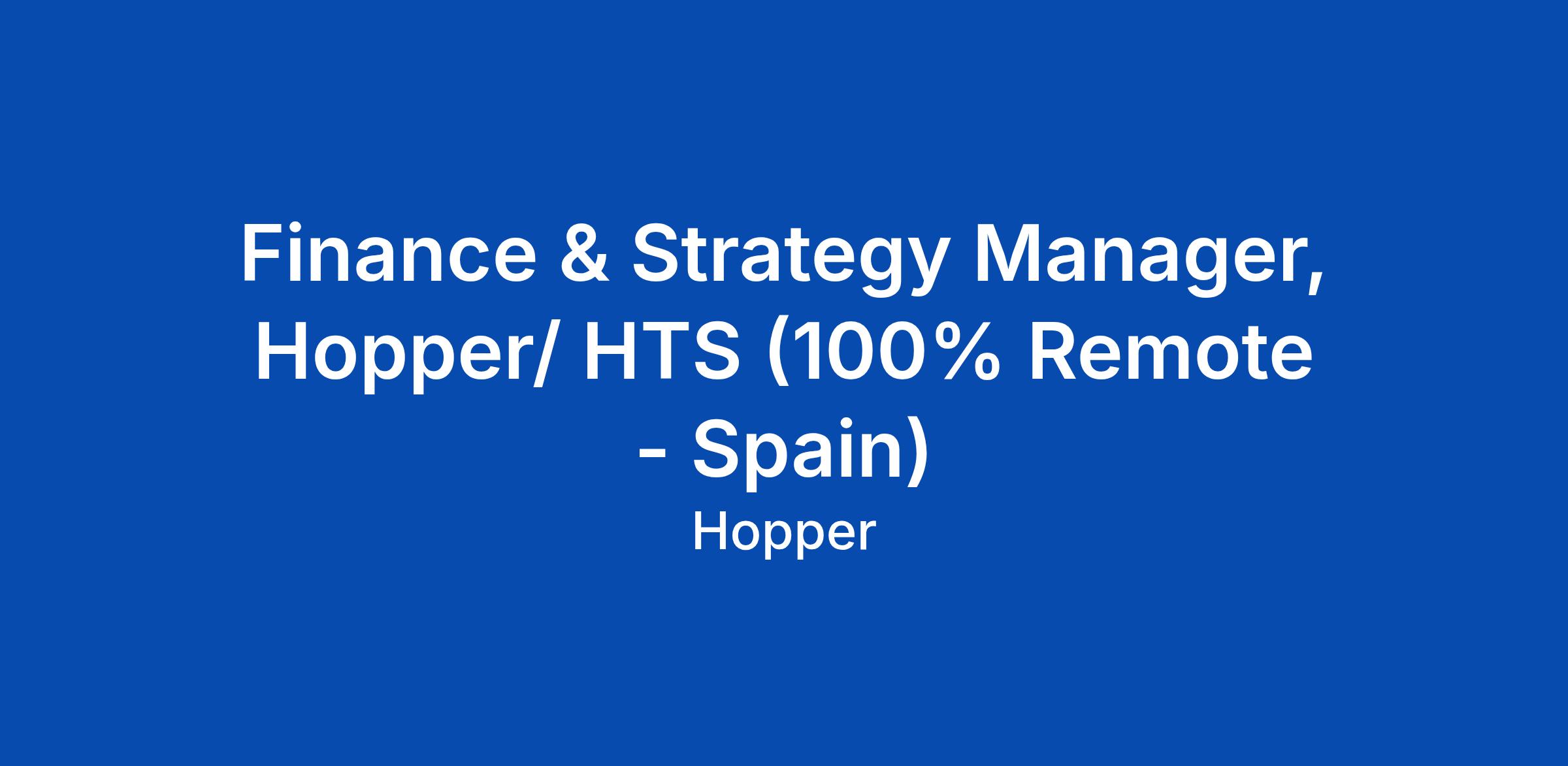 Finance & Strategy Manager, Hopper/ HTS (100% Remote - Spain)