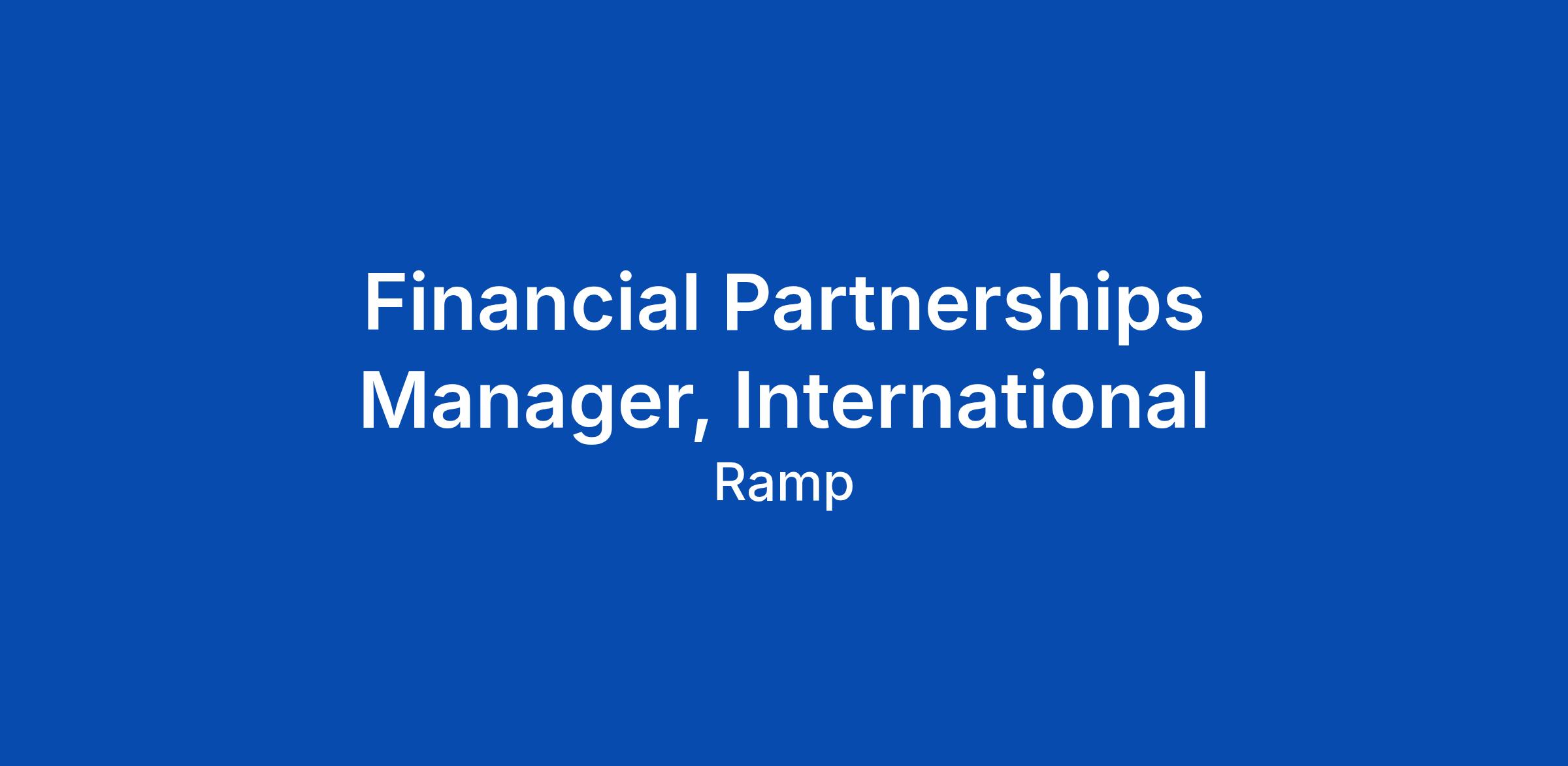 Financial Partnerships Manager, International