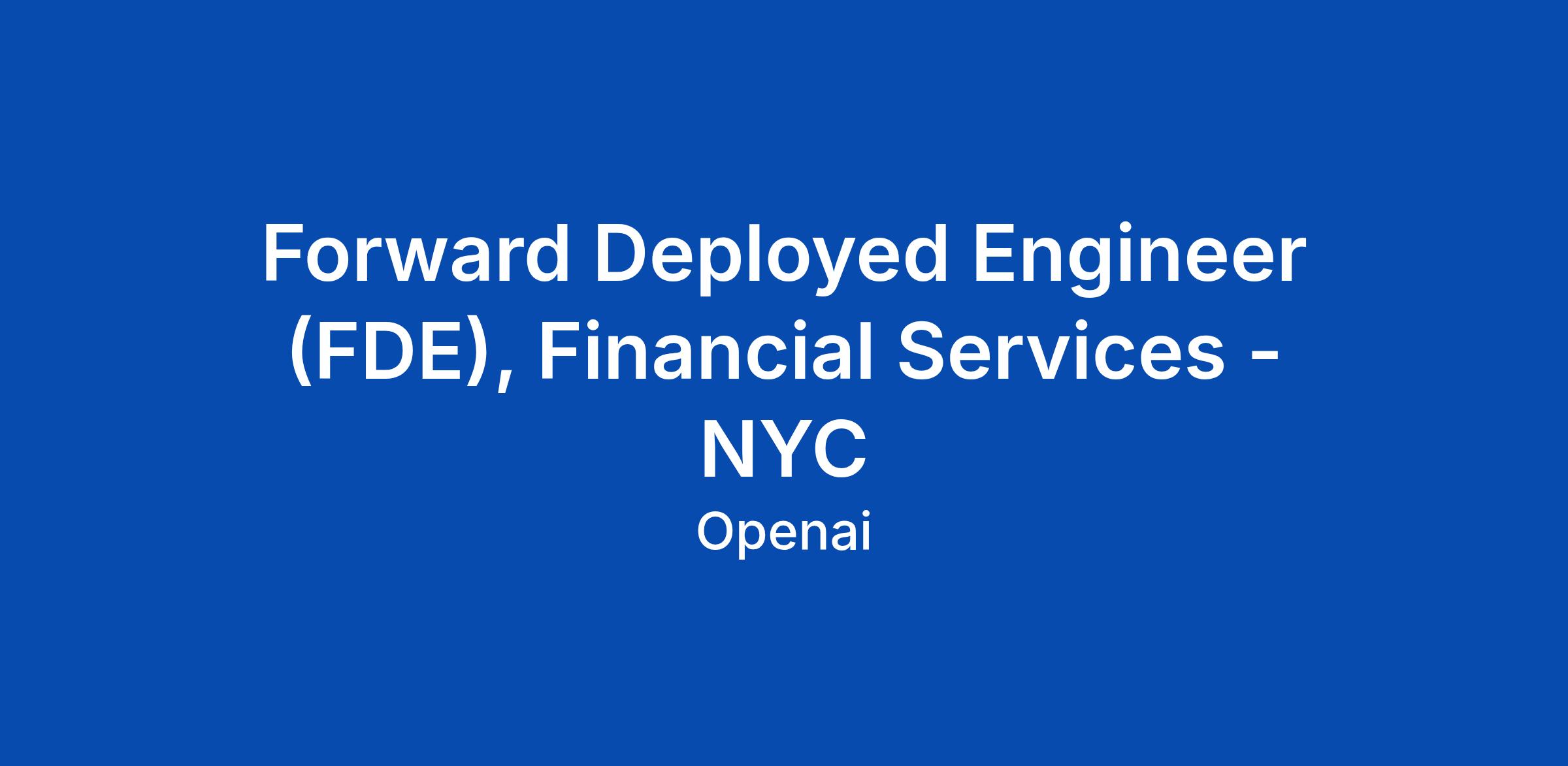 Forward Deployed Engineer (FDE), Financial Services - NYC