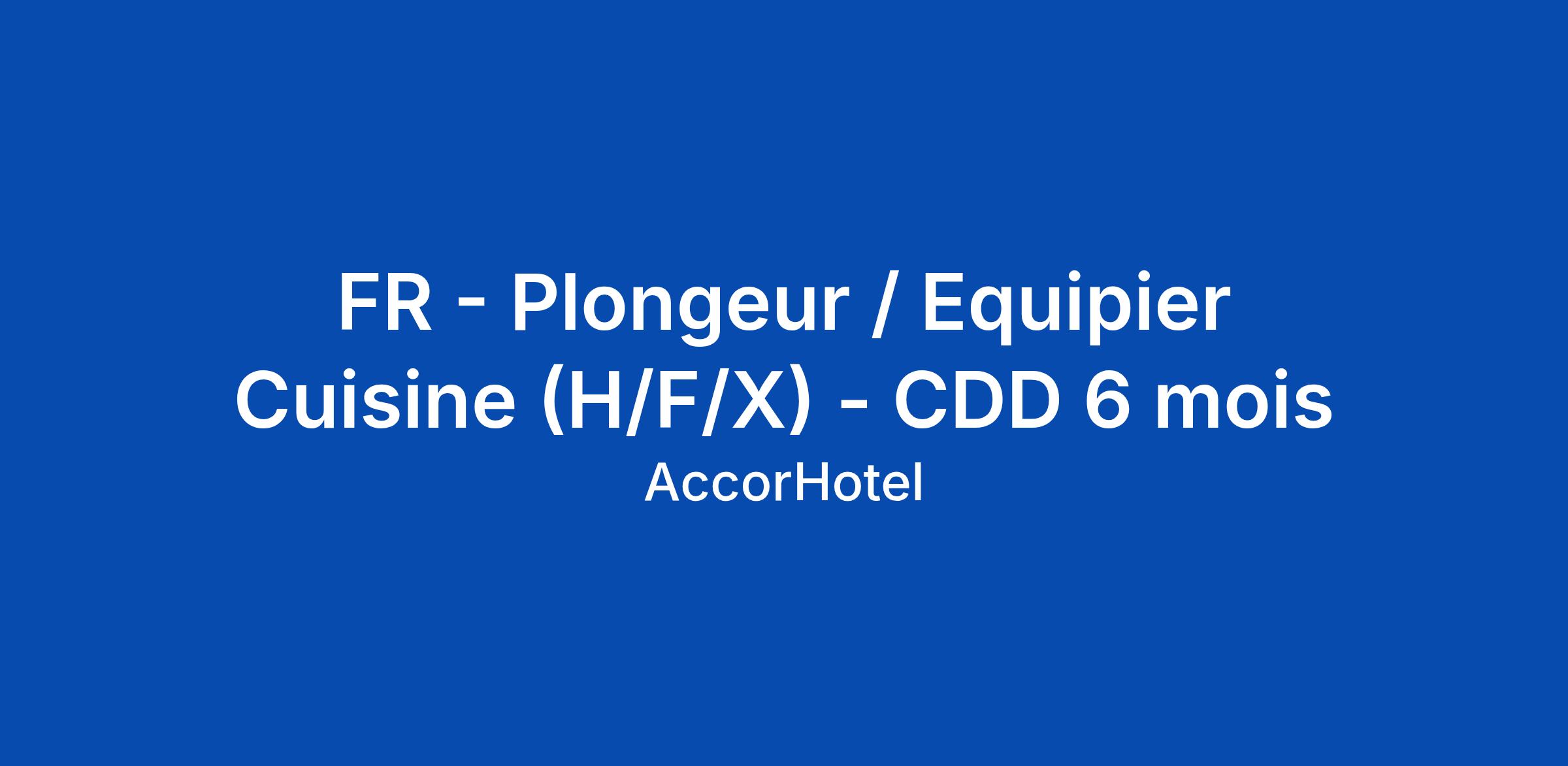 FR - Plongeur / Equipier Cuisine (H/F/X) - CDD 6 mois