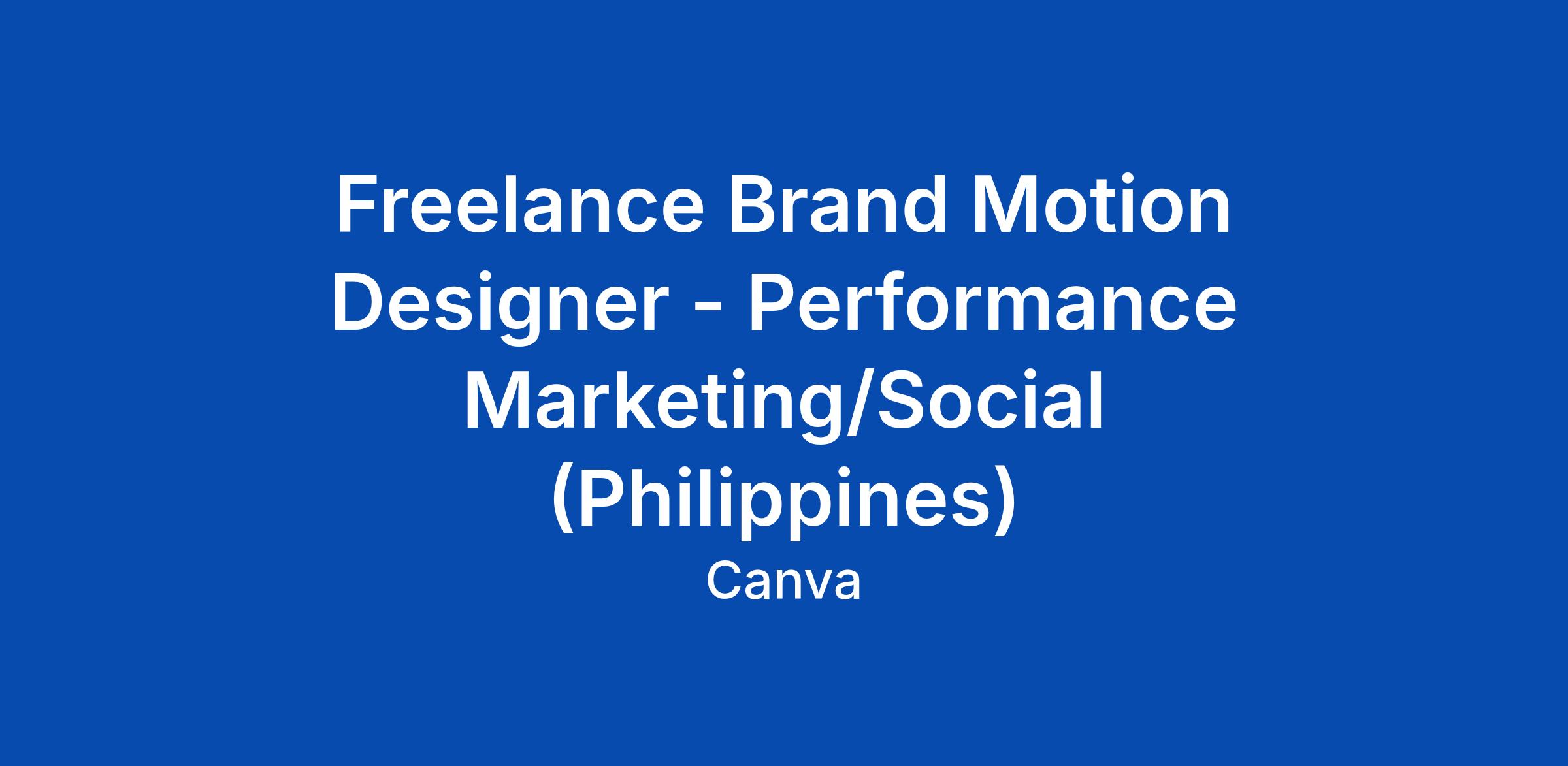 Freelance Brand Motion Designer - Performance Marketing/Social (Philippines)