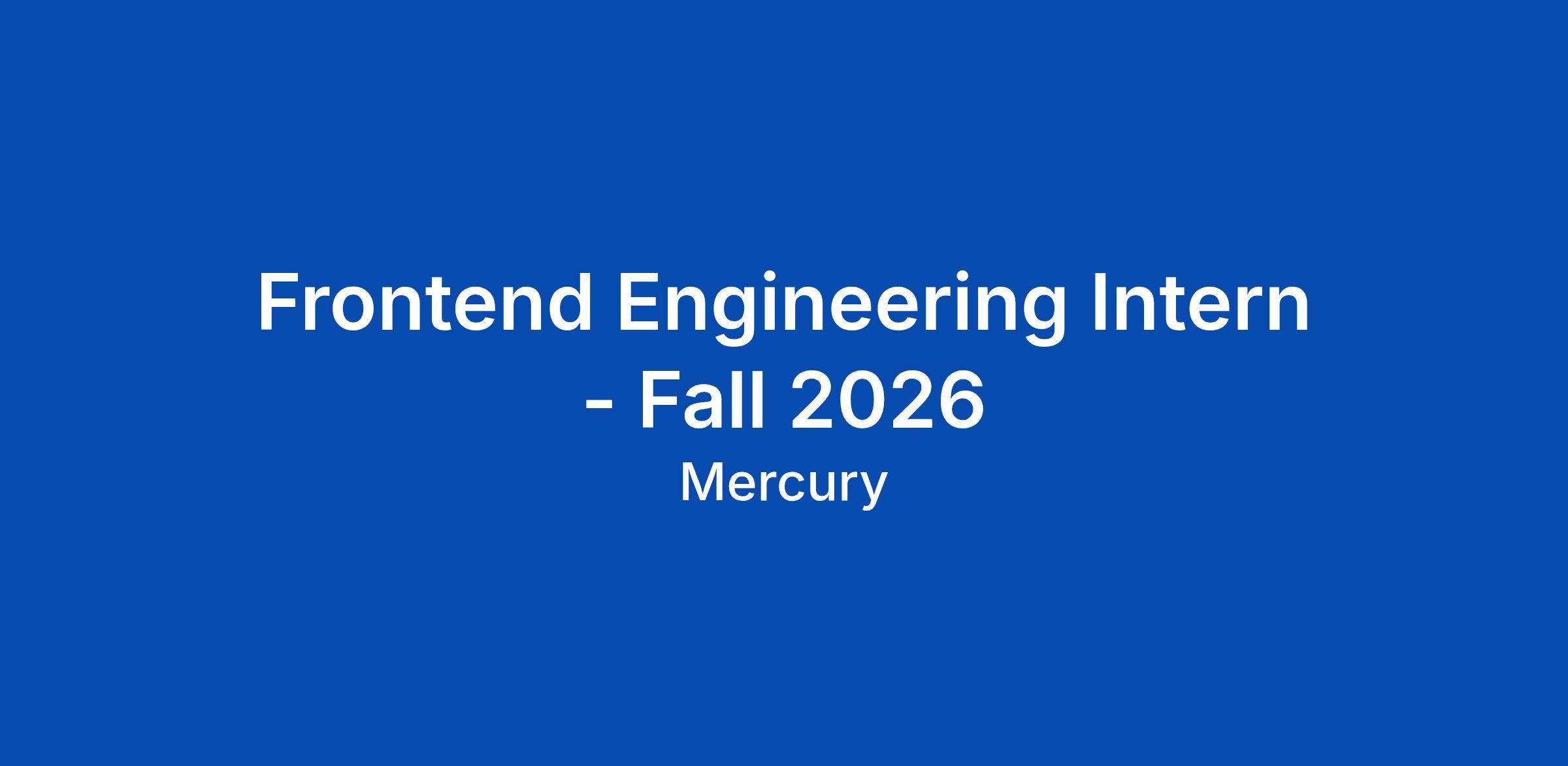 Frontend Engineering Intern - Fall 2026