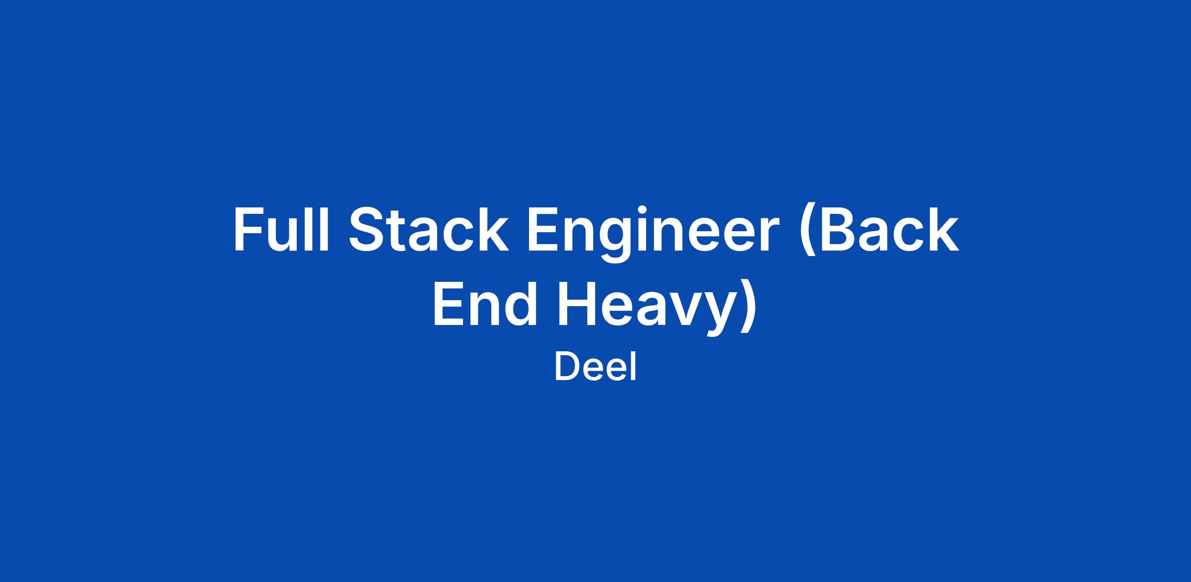 Full Stack Engineer (Back End Heavy)