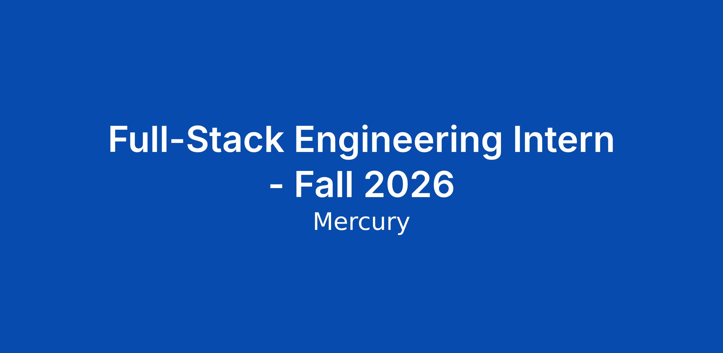 Full-Stack Engineering Intern - Fall 2026