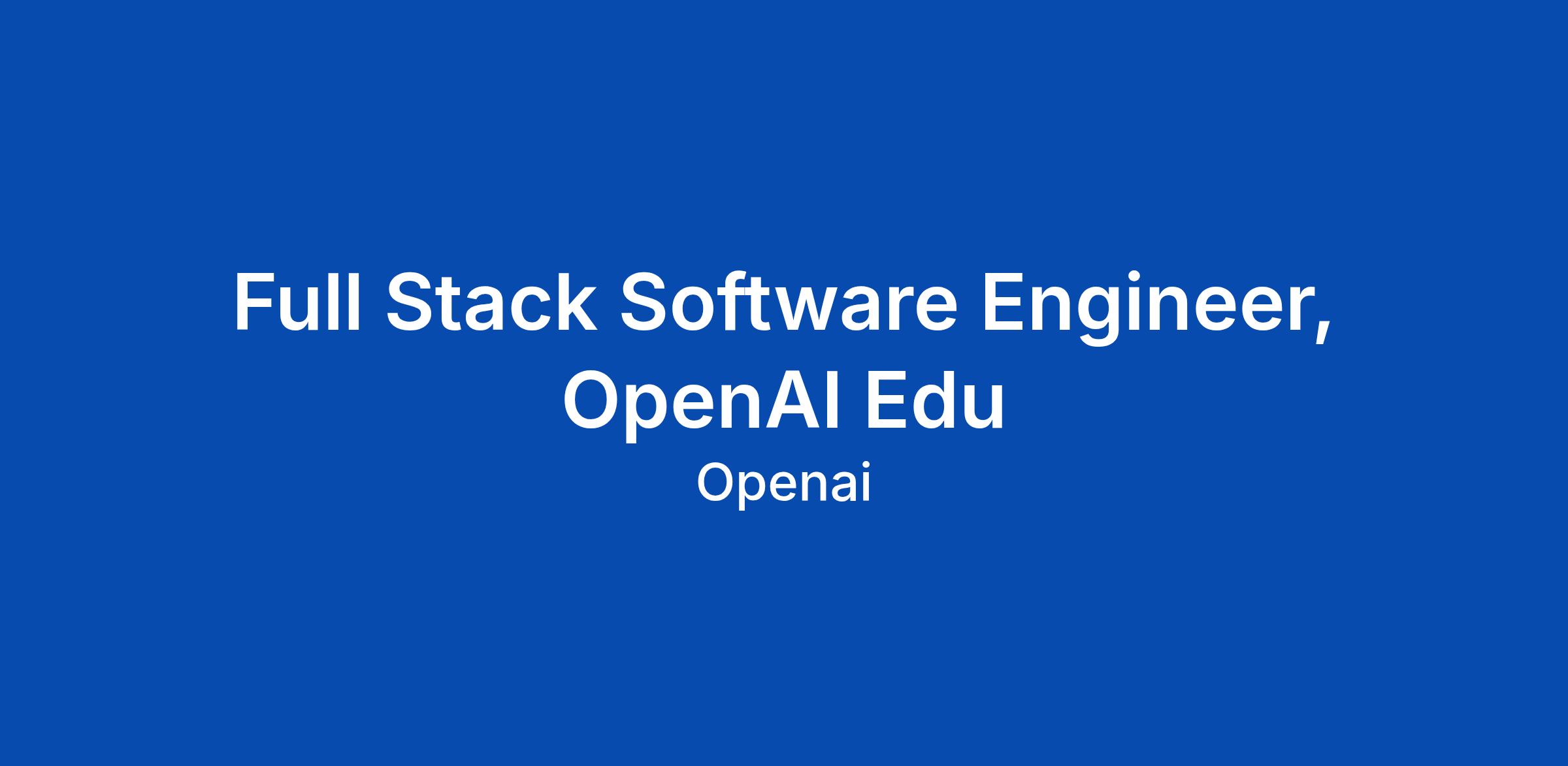 Full Stack Software Engineer, OpenAI Edu
