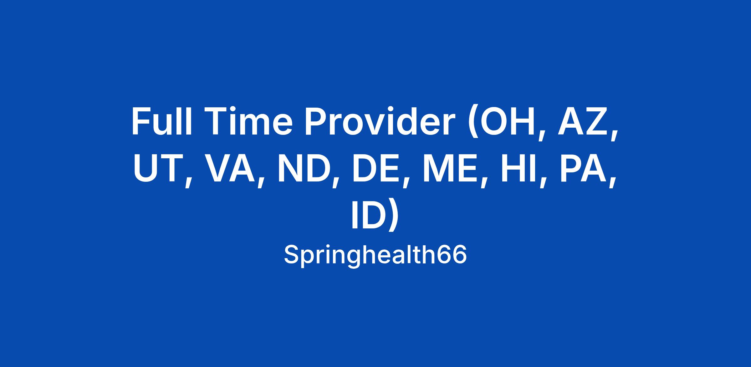 Full Time Provider (OH, AZ, UT, VA, ND, DE, ME, HI, PA, ID)