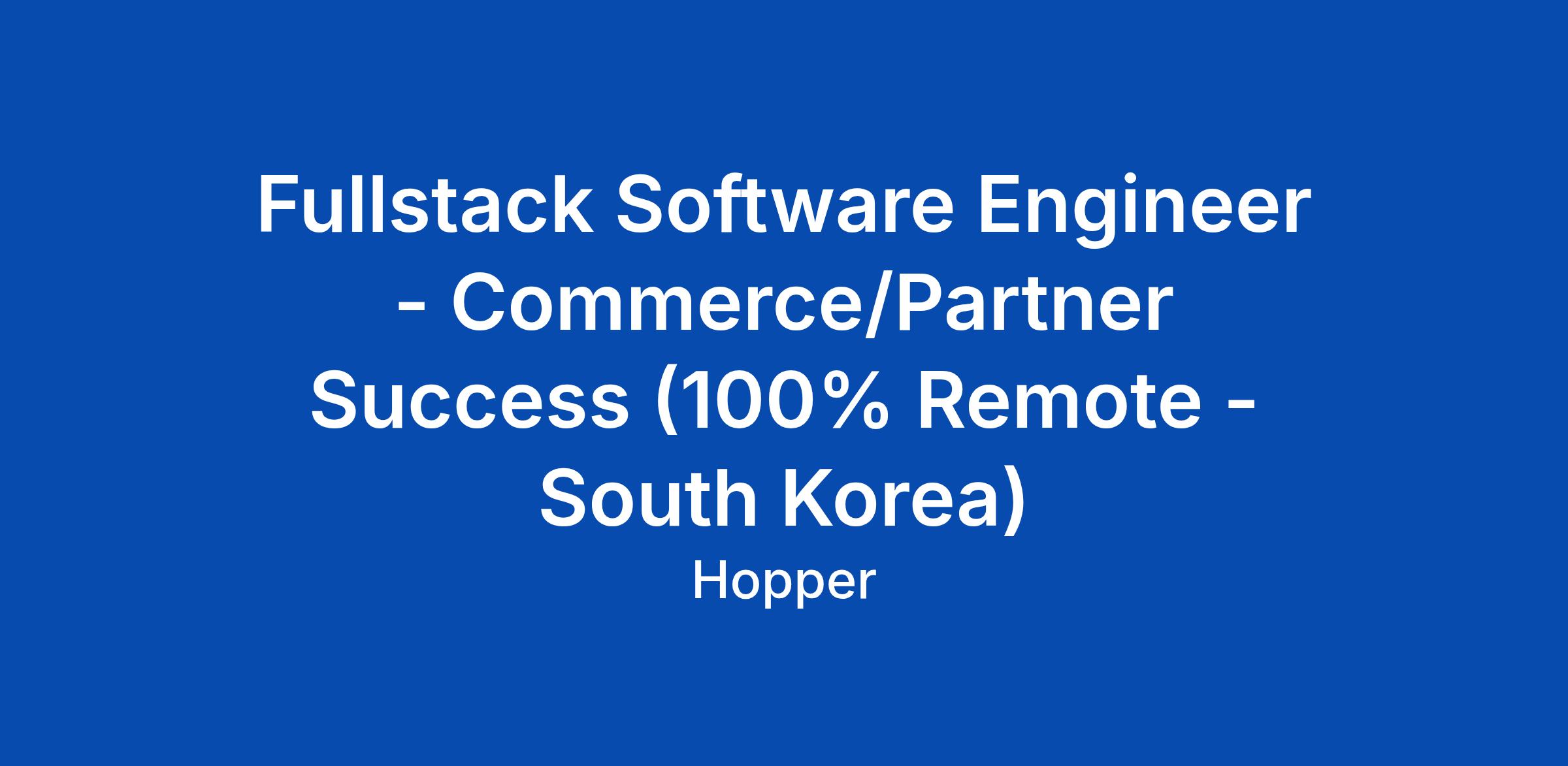 Fullstack Software Engineer - Commerce/Partner Success (100% Remote - South Korea)