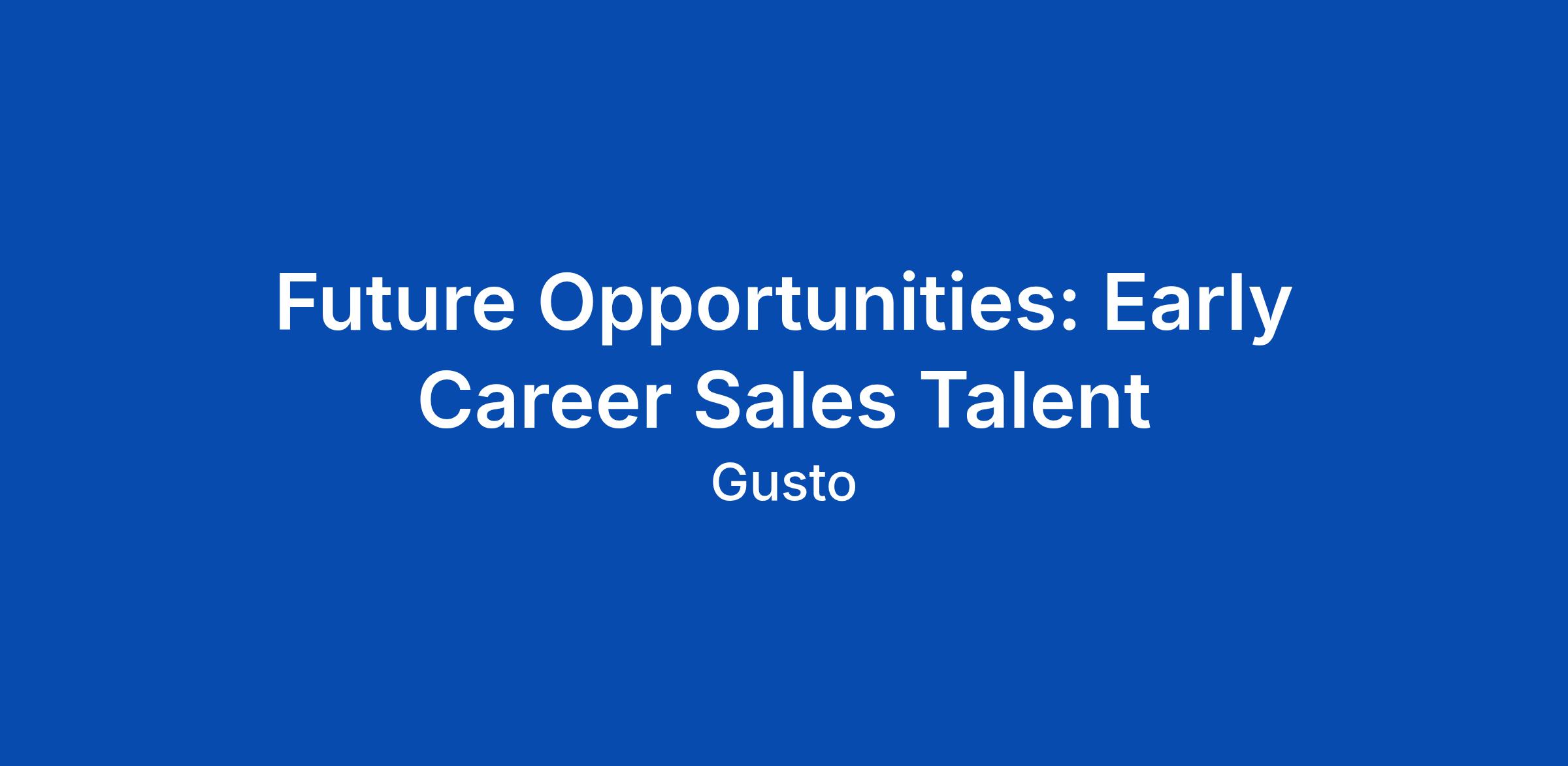 Future Opportunities: Early Career Sales Talent