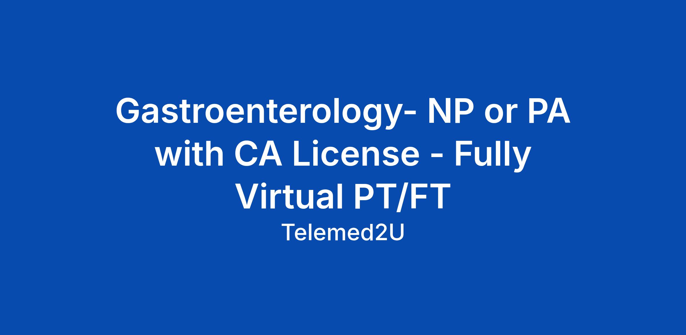 Gastroenterology- NP or PA with CA License - Fully Virtual PT/FT