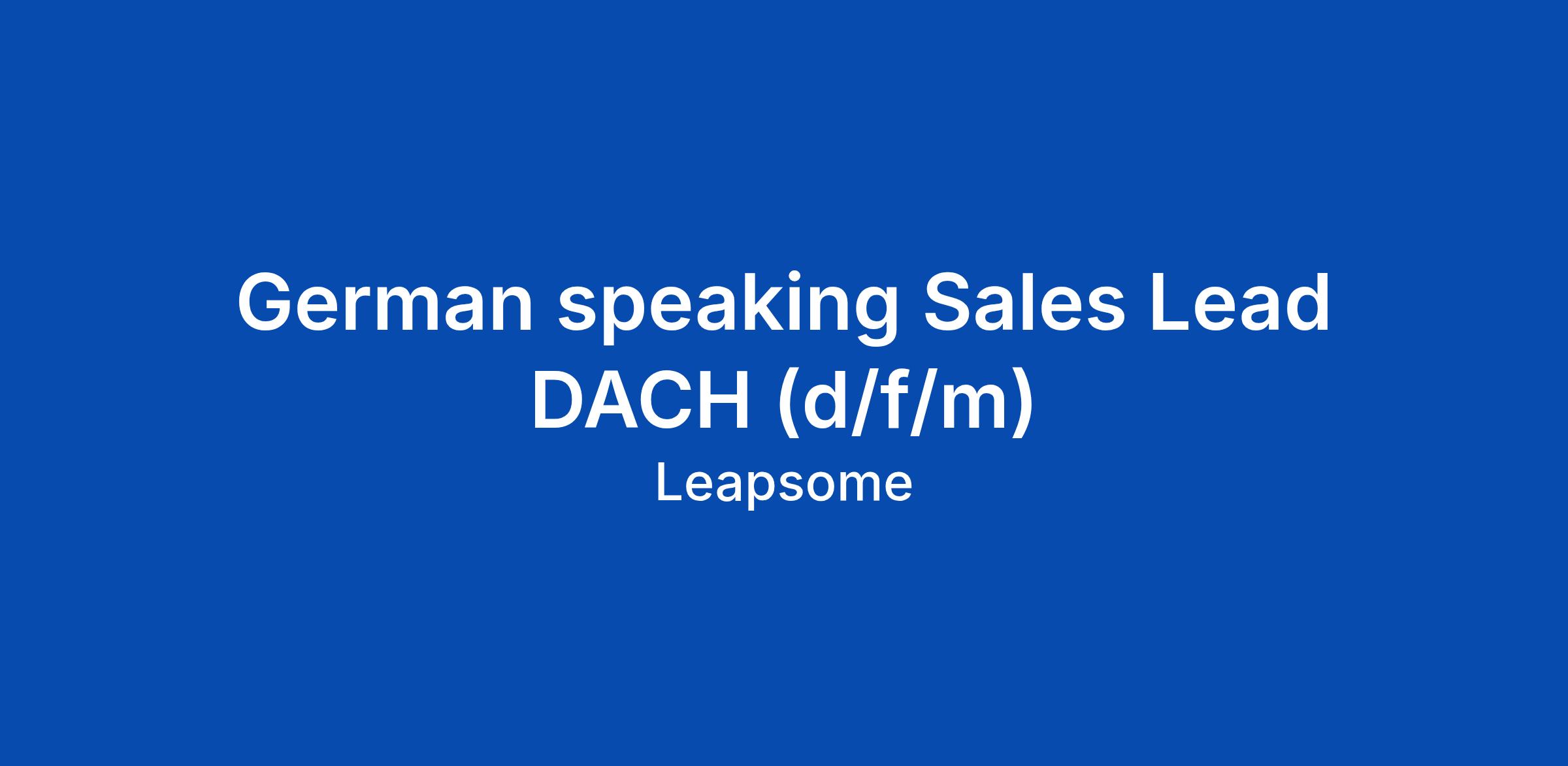 German speaking Sales Lead DACH (d/f/m)