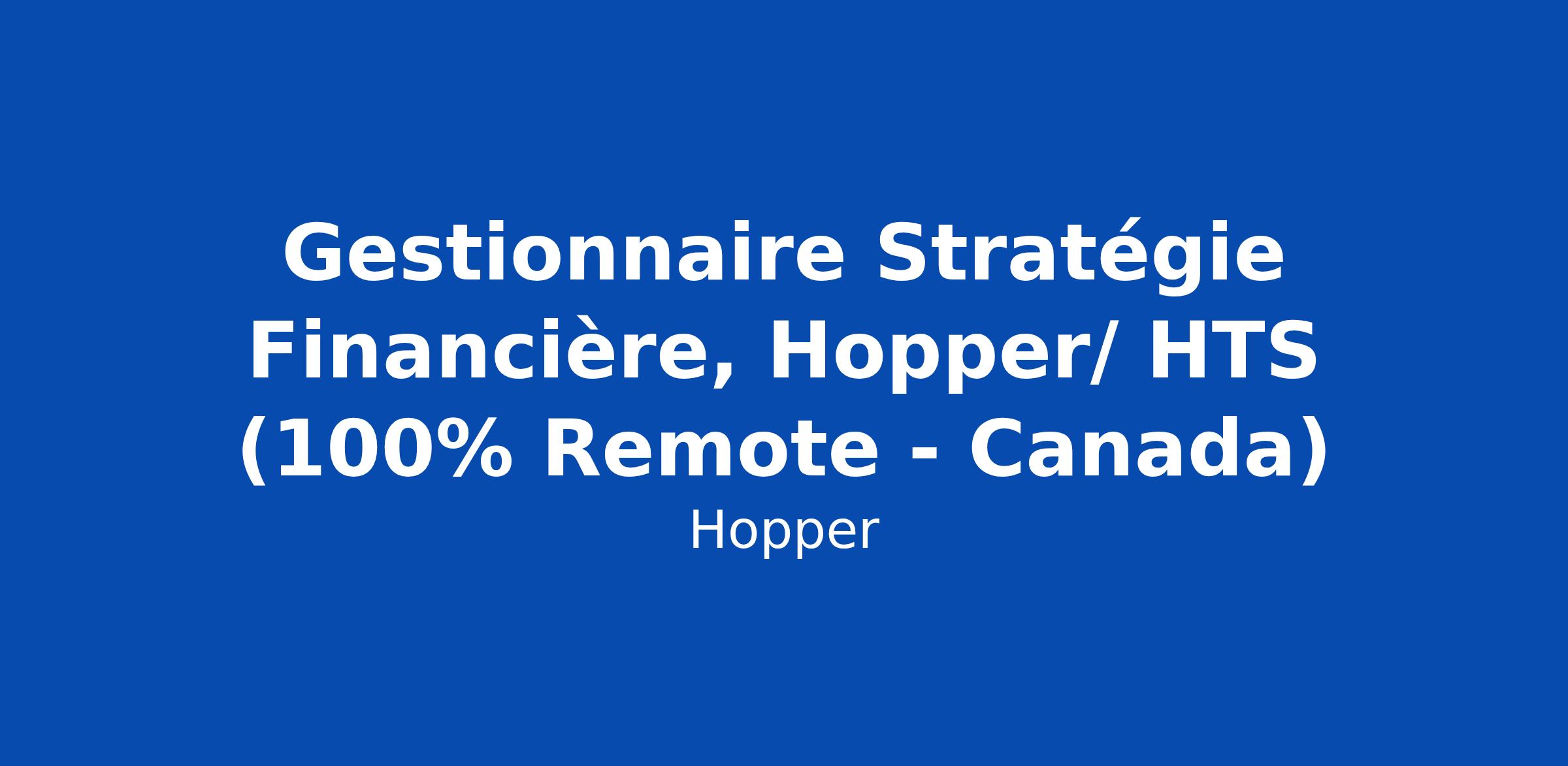 Gestionnaire Stratégie Financière, Hopper/ HTS (100% Remote - Canada)