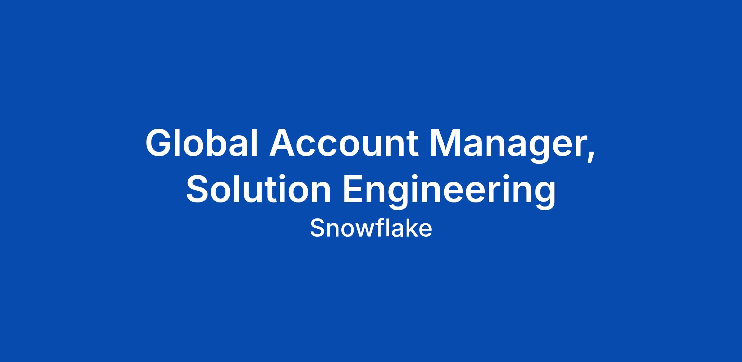 Global Account Manager, Solution Engineering
