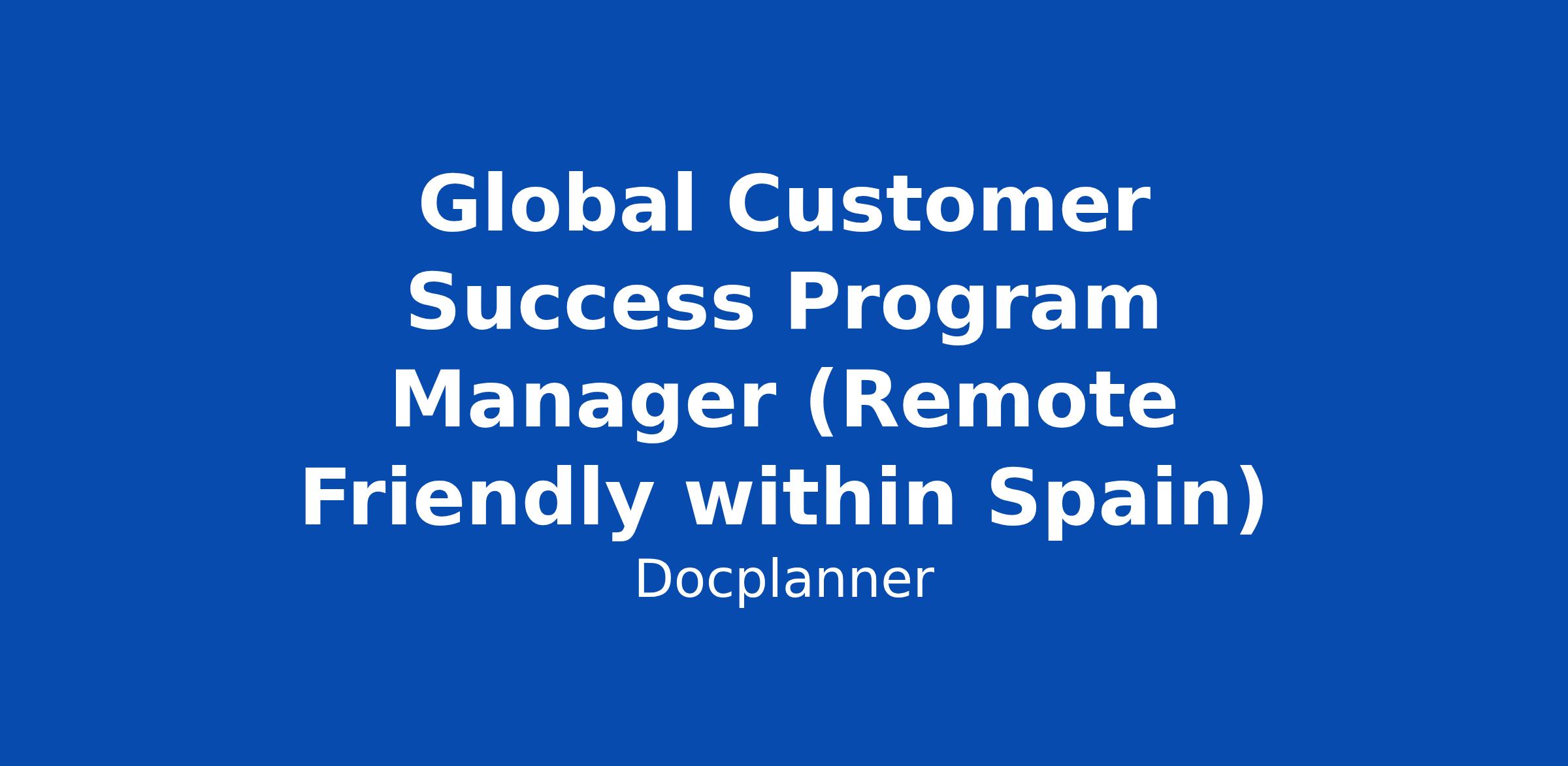 Global Customer Success Program Manager (Remote Friendly within Spain)