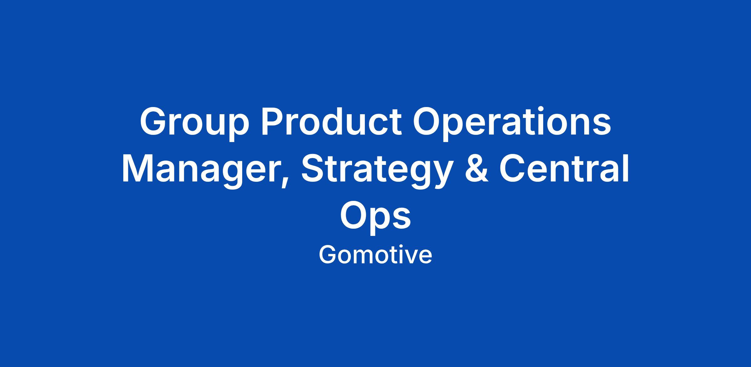 Group Product Operations Manager, Strategy & Central Ops