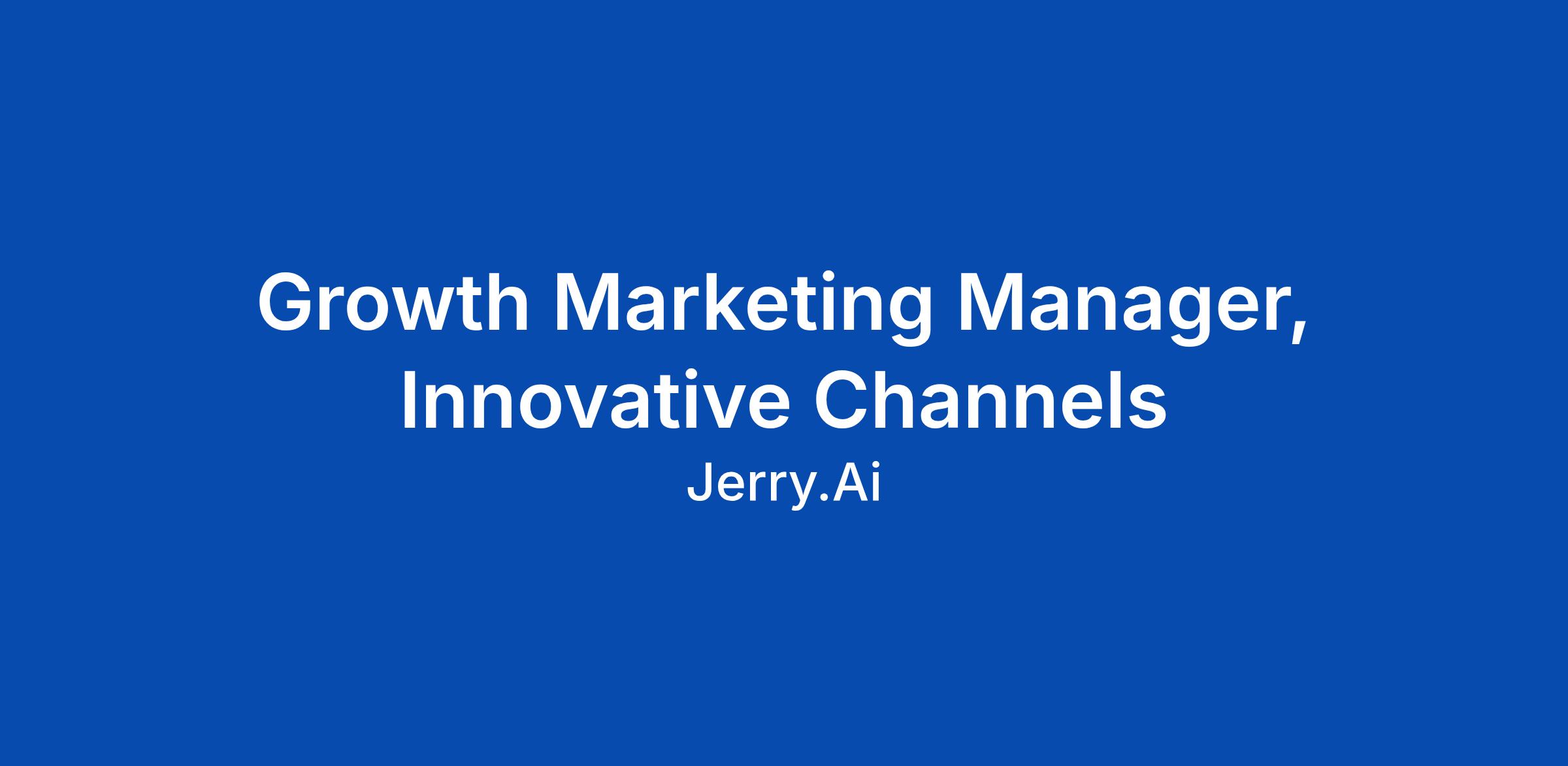 Growth Marketing Manager, Innovative Channels
