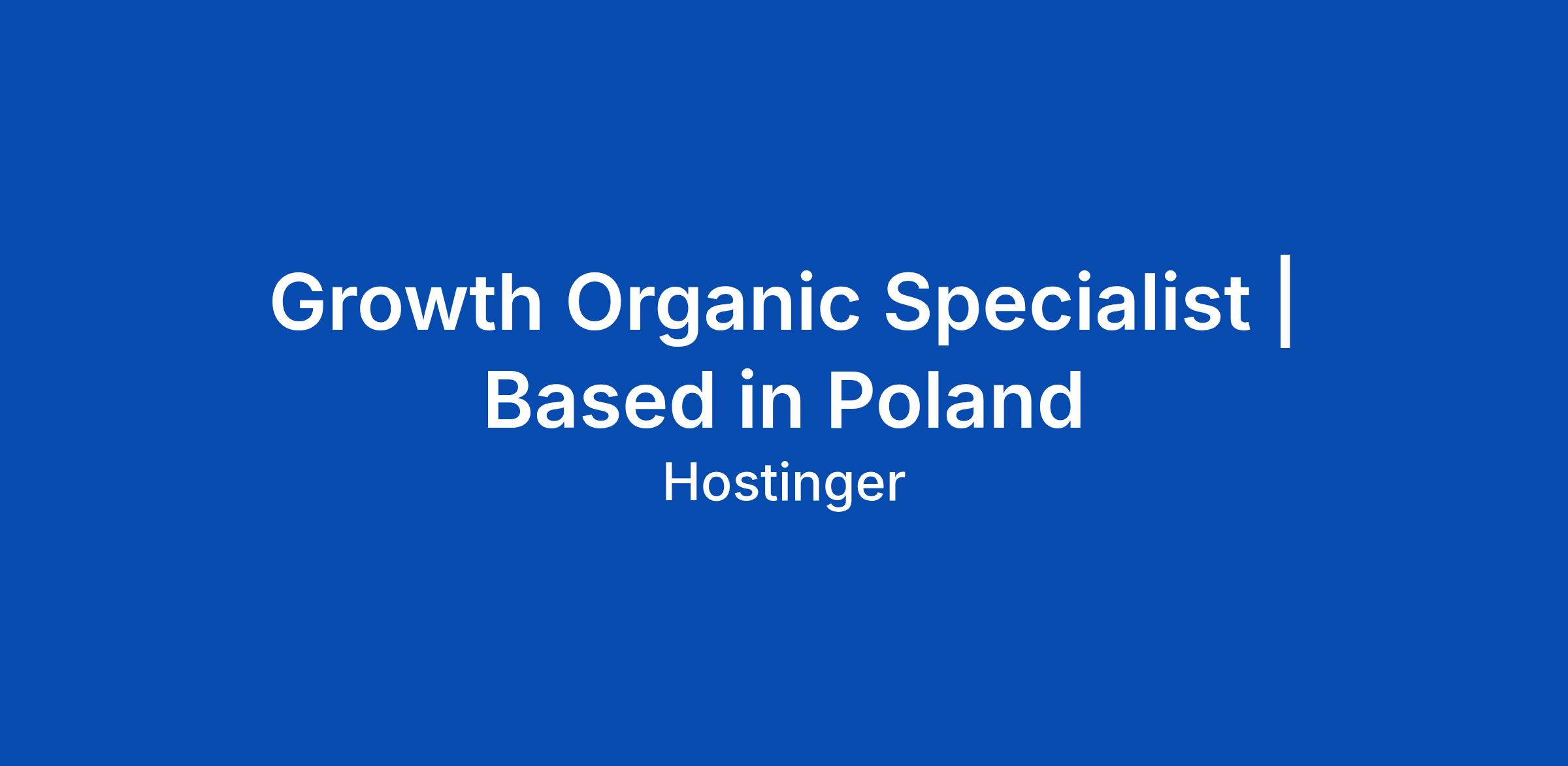 Join Hostinger, and weβll grow fast! π Weβre shaping the future of online success - powered by AI and driven by people. With 900+ talented professionals and over 5 million clients in 150 countries, we help creators and entrepreneurs bring their ideas to life faster and easier than ever before. Our mission: To provide tools that help individuals and small businesses succeed online faster and easier. Our culture: Guided by 10 company principles. Our formula for success: Customer obsession, innovative products, and talented teams. Your role at Hostinger As a Growth Organic Specialist, youβll play a key role in scaling one of our most important acquisition channels - Organic Marketing. Youβll work closely with the Organic Growth Strategist to execute and validate high-impact growth initiatives across SEO, content, YouTube and Localization channels. This is not a traditional SEO role. Youβll focus on experimentation, analysis, and execution, helping turn strategic ideas into measurable results. If you love discovering opportunities that span multiple channels, the thrill of testing new tactics before they're proven, the challenge of translating complex data into clear strategy, and the ... Click Apply to read the full job description.