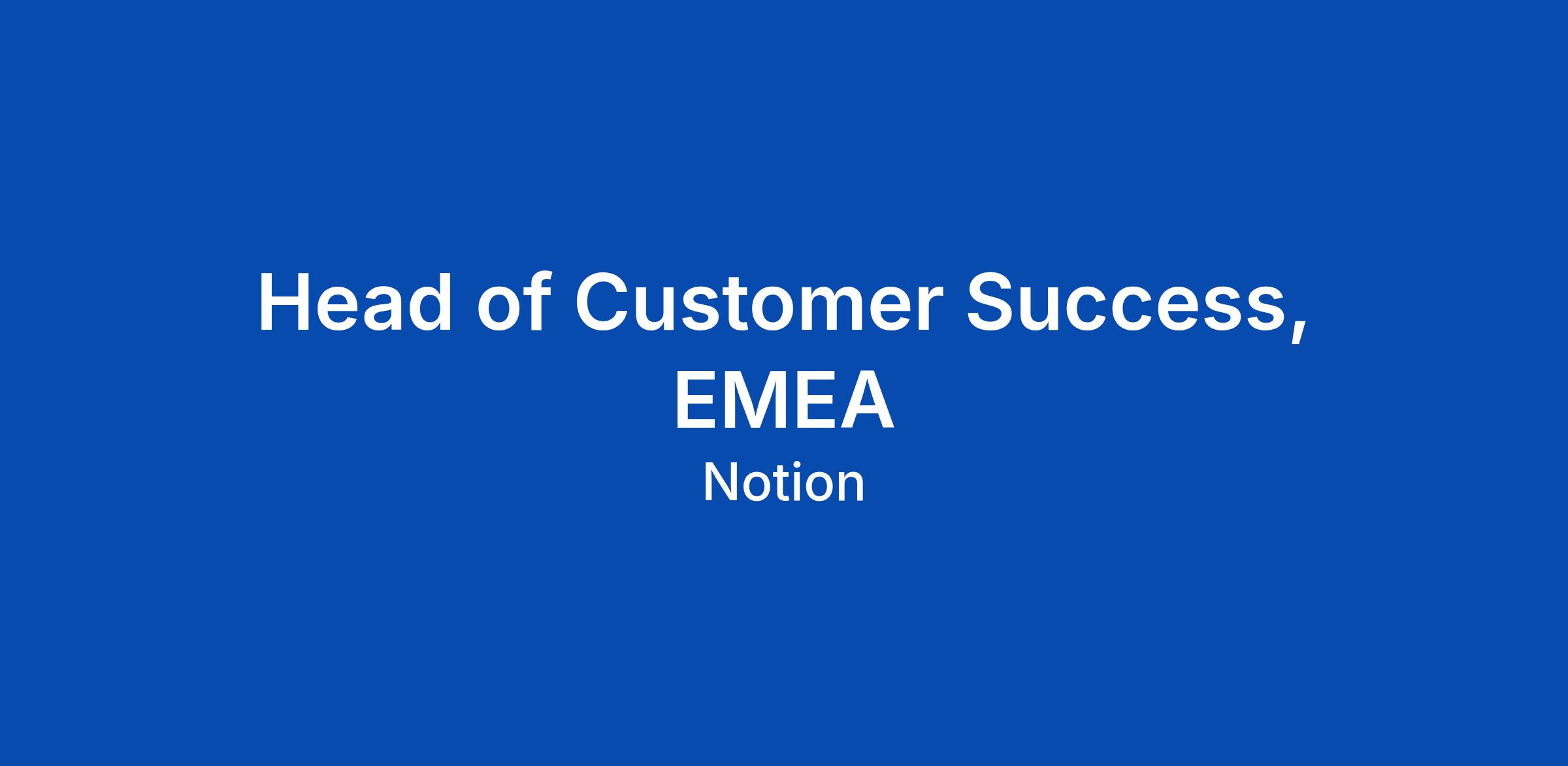 ABOUT US: Notion helps you build beautiful tools for your lifeβs work. In today's world of endless apps and tabs, Notion provides one place for teams to get everything done, seamlessly connecting docs, notes, projects, calendar, and emailβwith AI built in to find answers and automate work. Millions of users, from individuals to large organizations like Toyota, Figma, and OpenAI, love Notion for its flexibility and choose it because it helps them save time and money. In-person collaboration is essential to Notion's culture. We require all team members to work from our offices on Mondays, Tuesdays, and Thursdays, our designated Anchor Days. Certain teams or positions may require additional in-office workdays. ABOUT THE ROLE: We're looking for a customer-focused, results-oriented leader to oversee Customer Success across EMEA at Notion. You'll report to the Global Head of Customer Success and lead experienced teams that help customers get the most out of Notion through effective adoption and expansion. You'll also champion Notion's vision to build the connected workspace. WHAT YOU'LL ACHIEVE: - Strategic Alignment: Develop and implement strategies to align the EMEA Customer Success or... Click Apply to read the full job description.